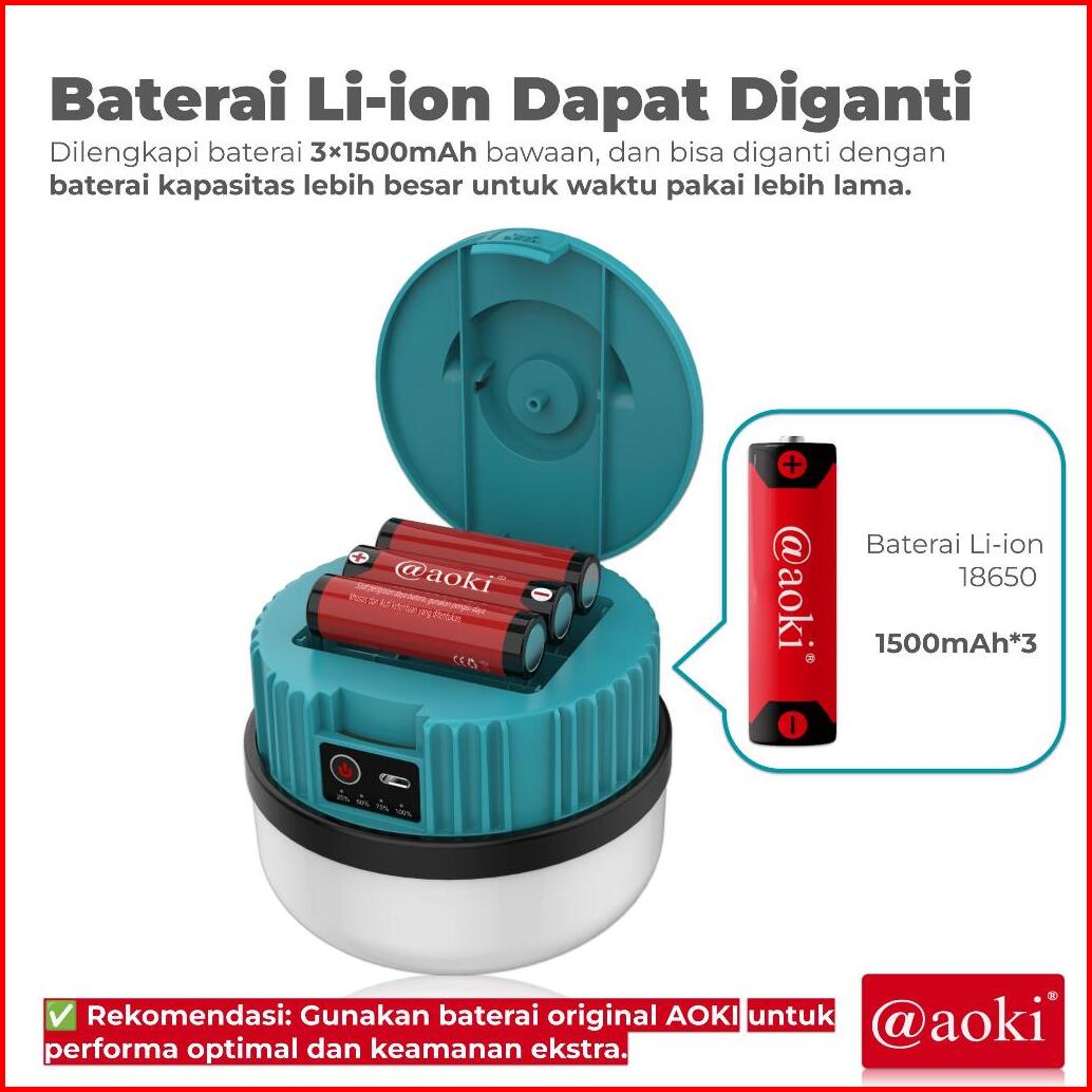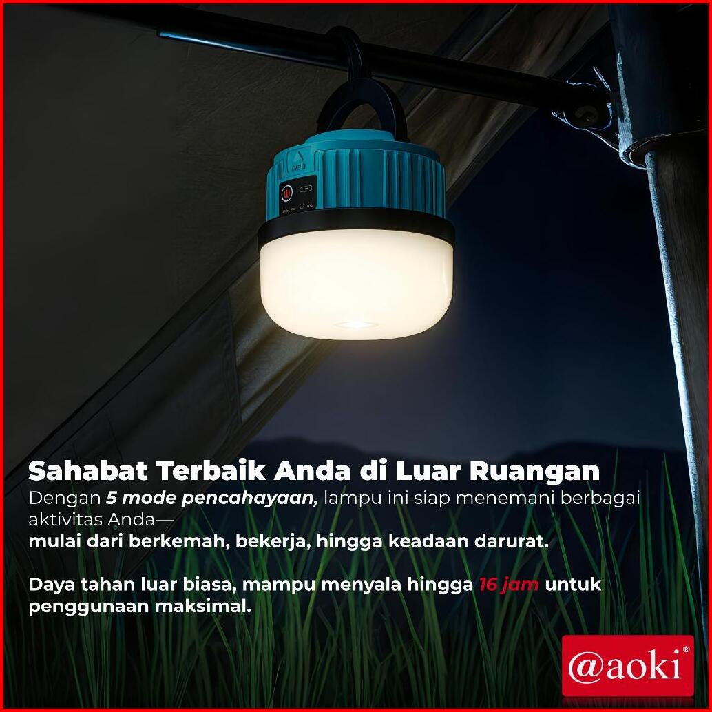 Aoki Omniglow 520 Lampu Emergency Led Gantung Baterai Dapat Diganti Cas Tipe-c Untuk Darurat Outdoor Isi Ulang