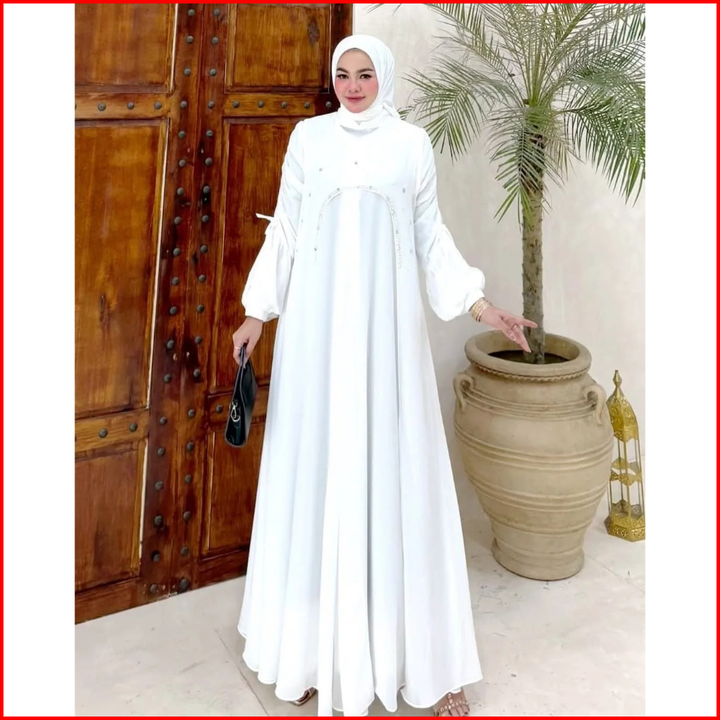 Khenza Abaya Gamis Payet Ceruty Babydoll Terbaru Dress Burgundy Outfit Kekinian Wanita Muslim 2025