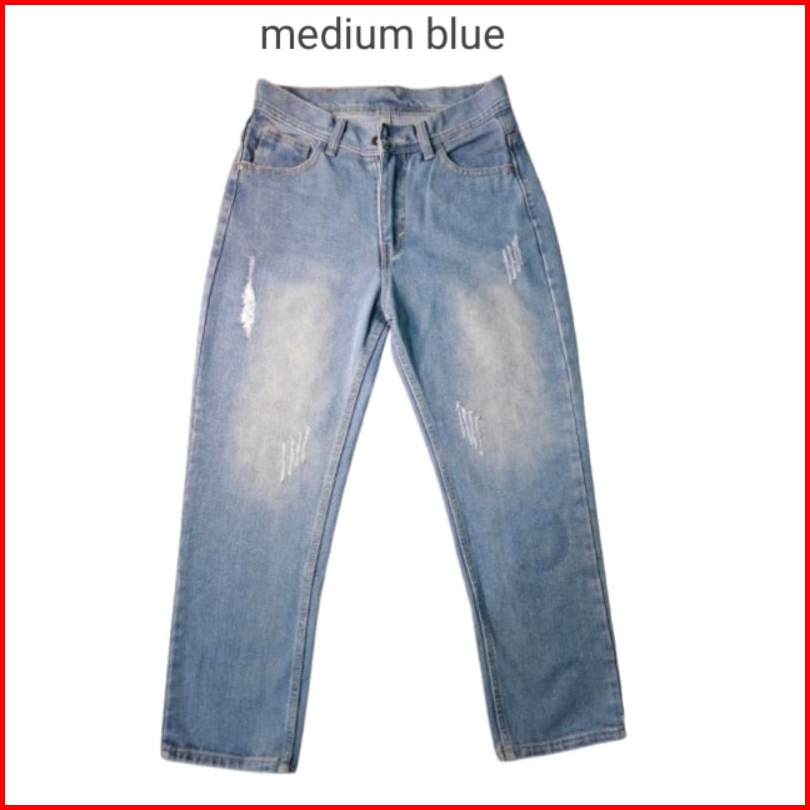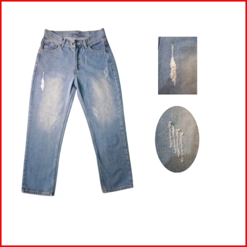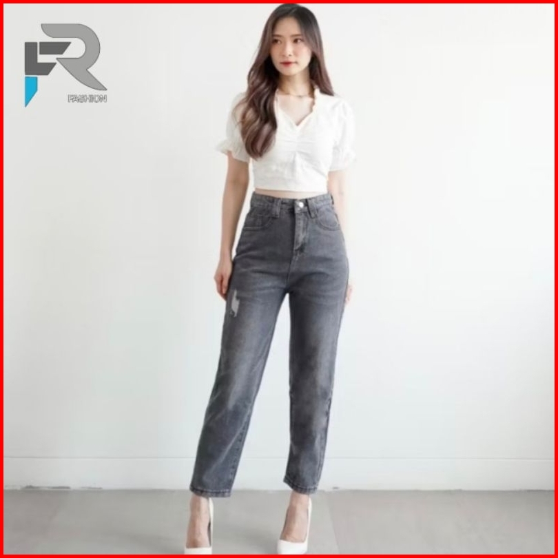 Celana Boyfriend Ripped Jeans High Waist Wanita Celana Panjang Longgar P526 Jins Hw Jeans Sobek Denim Kekinian Terbaru