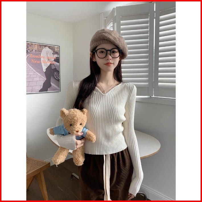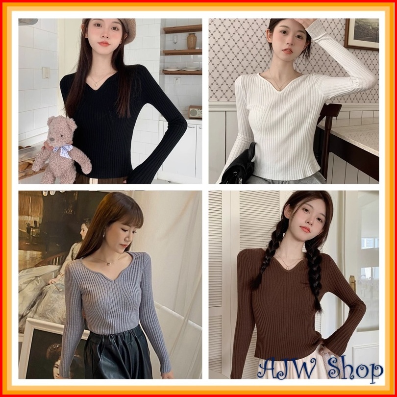 Ajw Atasan Wanita Lengan Panjang Leher Gelombang Rcx Longsleeve Korean Wavey Neck Casual Atasan Kasual Lengan Panjang Ra