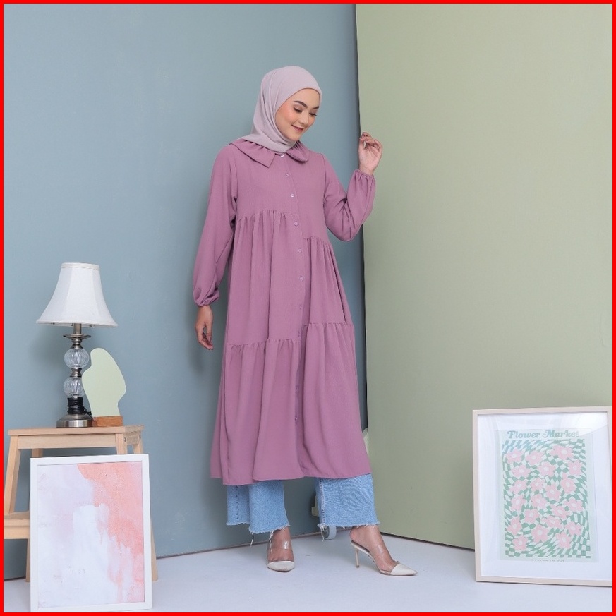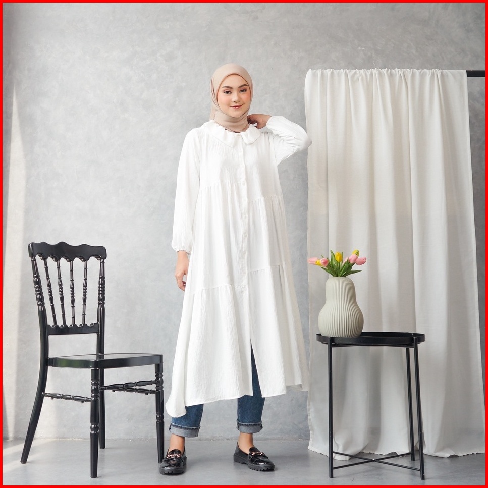 Ayesha Midi Dress Long Tunik Airflow Crincle Looklike Heaven Lights