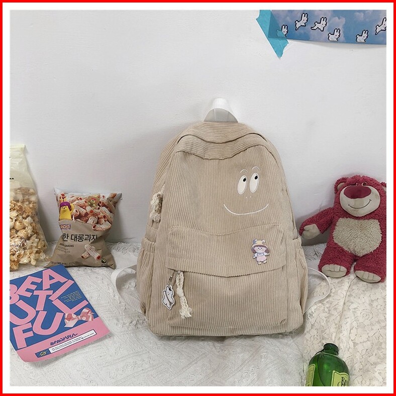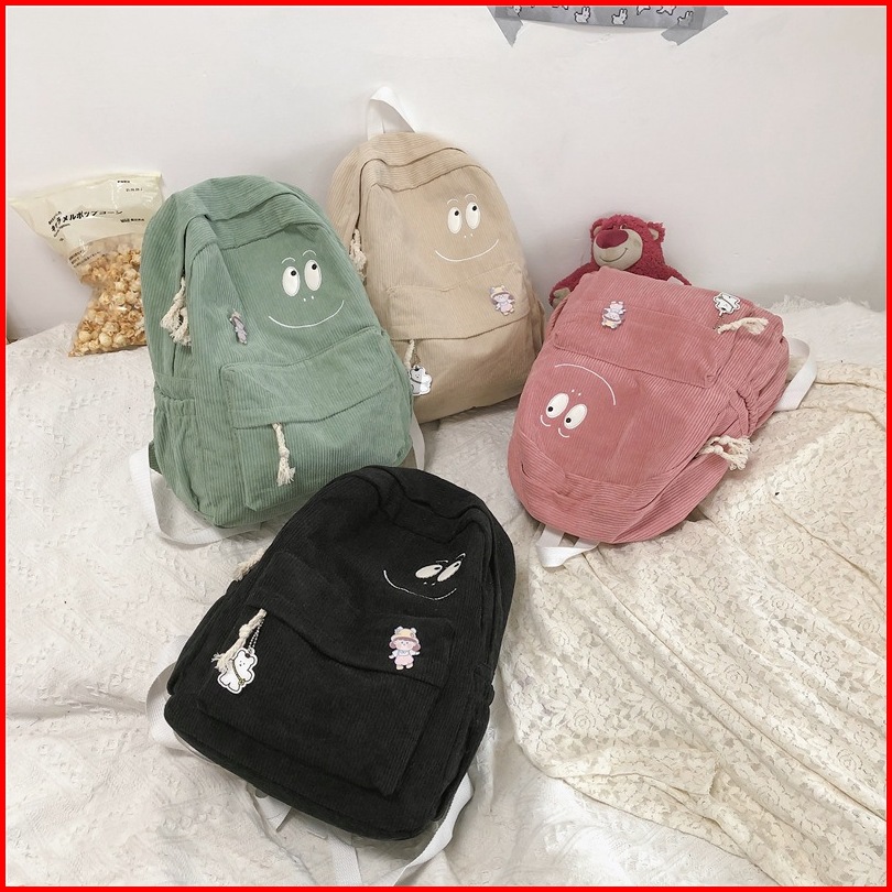 Bag Tas Ransel Wanita Korduroi Cute Korean School Backpack Sekolah Kanvas Fashion Bag Backpack