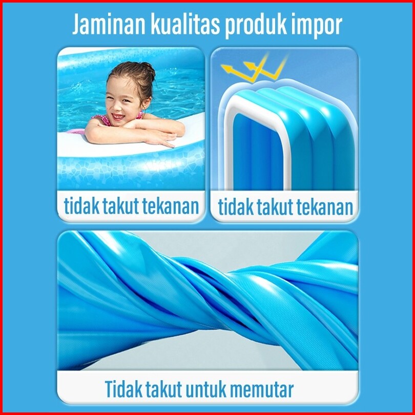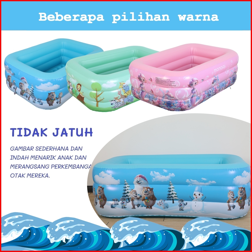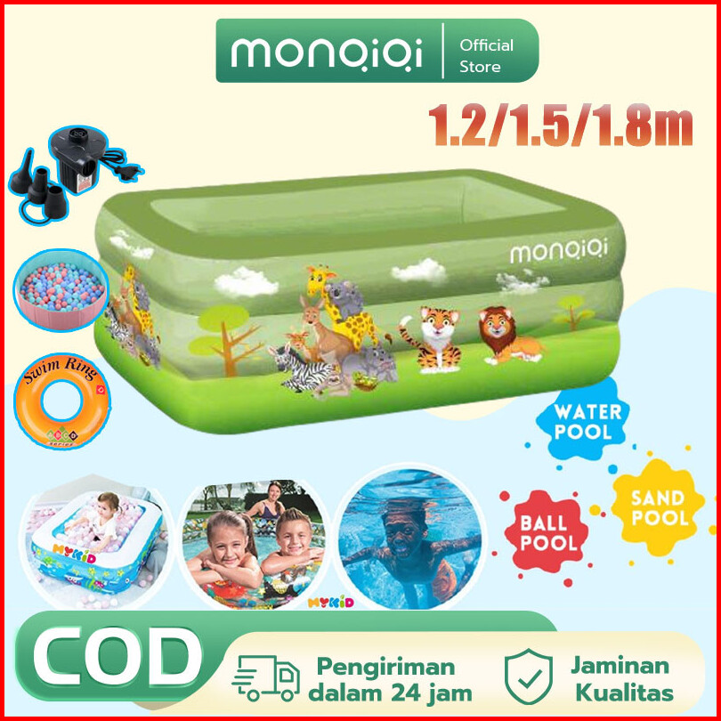 Monqiqi Kolam Renang Anak Kolam Mandi Bola Inflatable Swimming Pool 150 180 210 Cm Kolam 3 Ring Baby Spa Murah