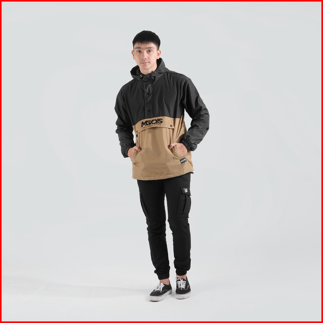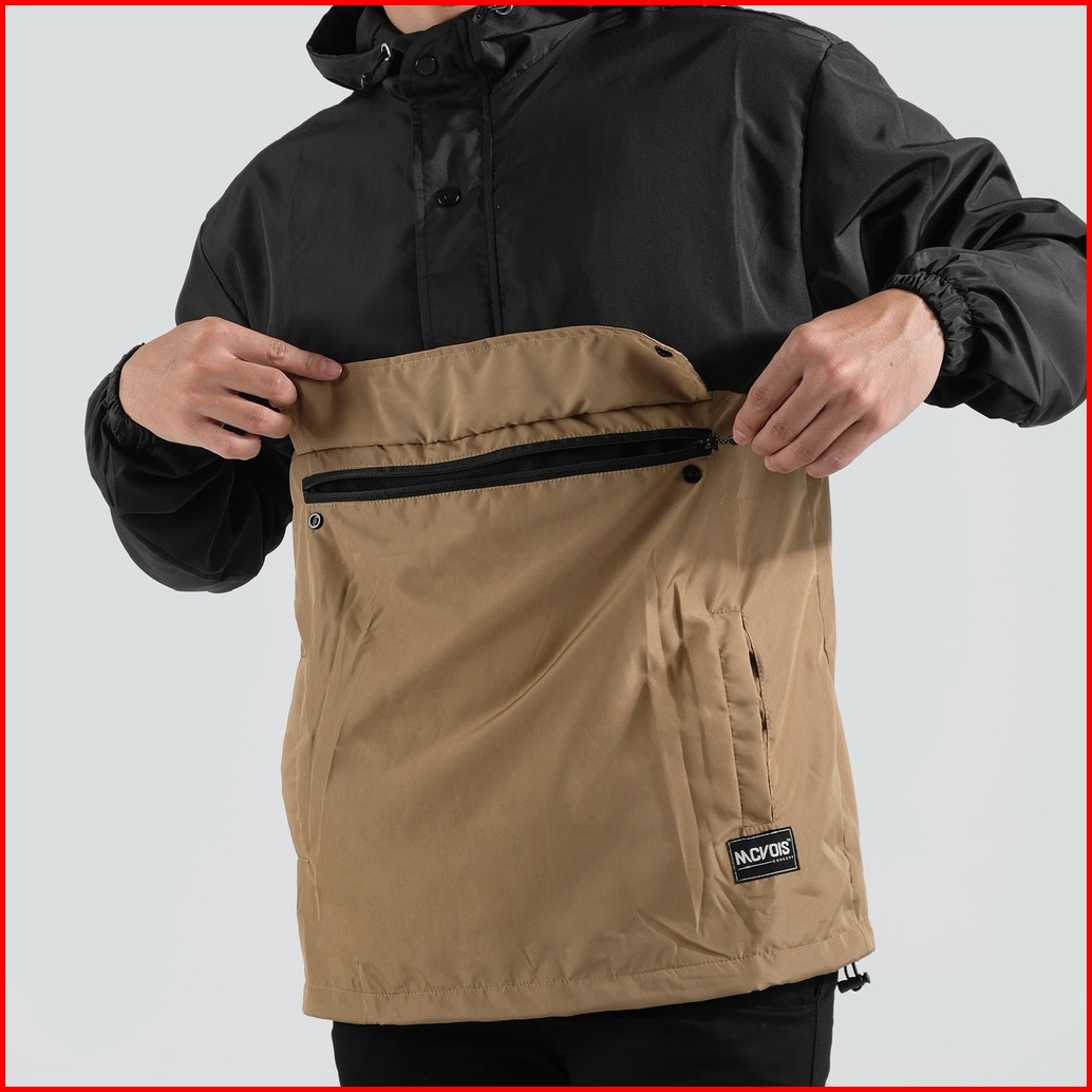 Mcvois Jaket Cagoule Pria Black Cream Premium Distro