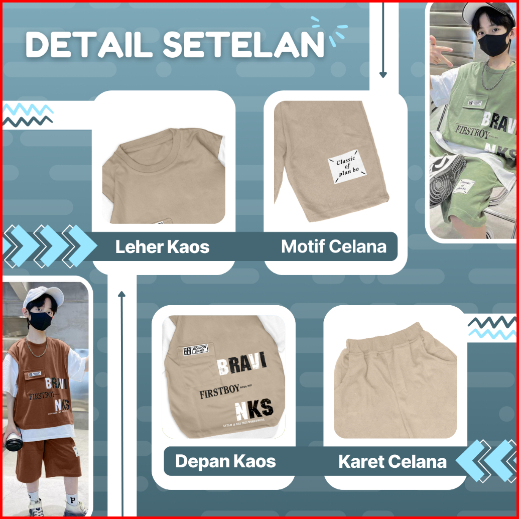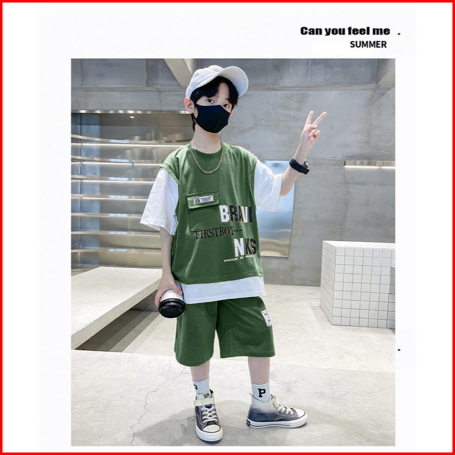 Mokokomo - Setelan Anak Laki Laki Oneboy Lengan Pendek Pakaian Anak Usia 6-14th Set Baju Kaos Harian