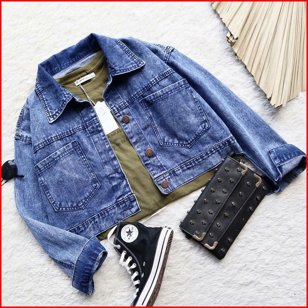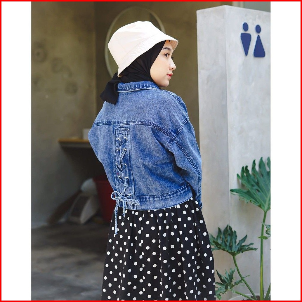 Jaket Jeans Wanita Crop Denim Tali Belakang Kekinian Terbaru