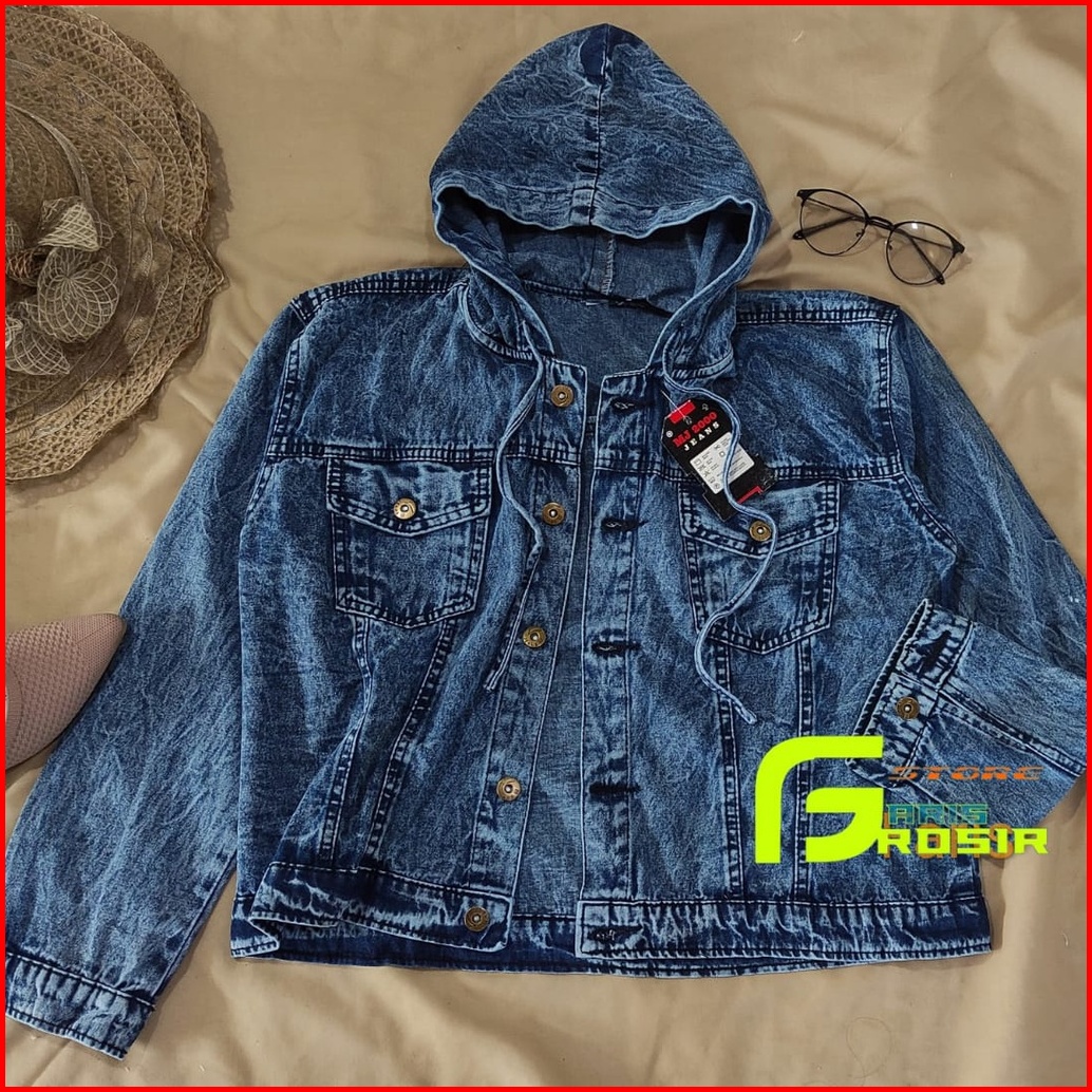 Jaket Jeans Wanita Hoodie Hodie Hoddy Jacket Denim Topi Hoody Terbaru Kekinian