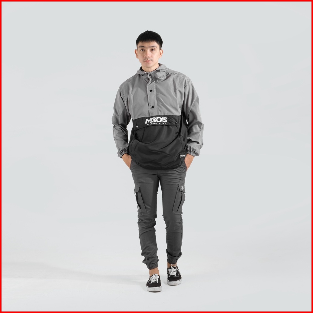 Mcvois Jaket Cagoule Pria Grey Black Premium Distro