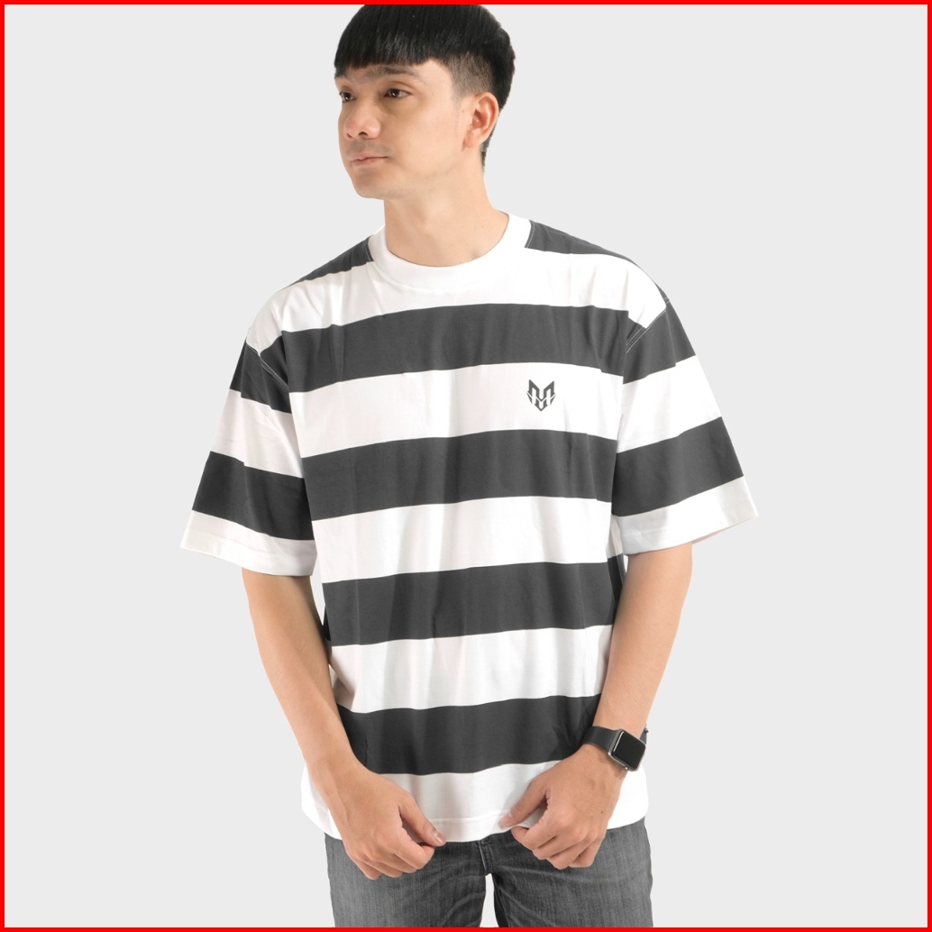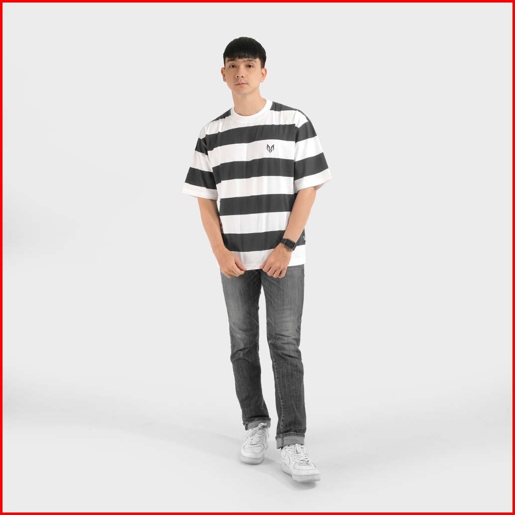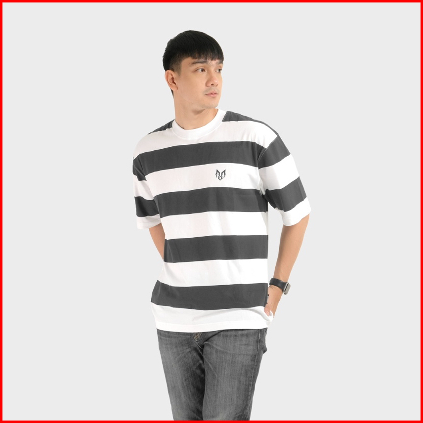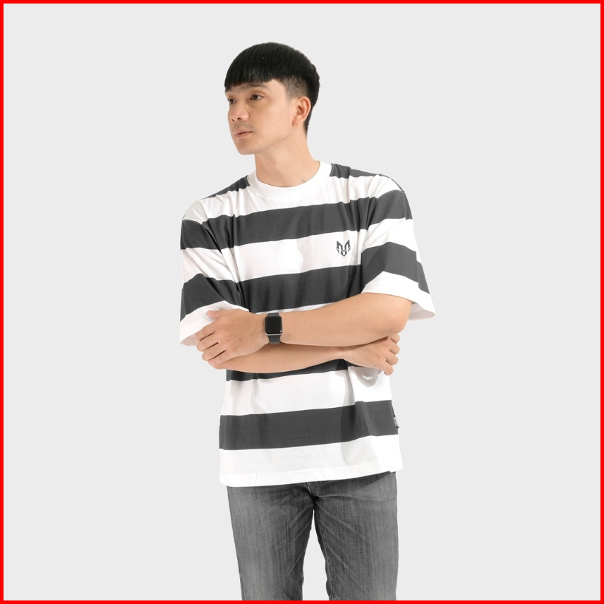 Mcvois Tshirt Stripe Oversize Grey Cotton Combad 24s