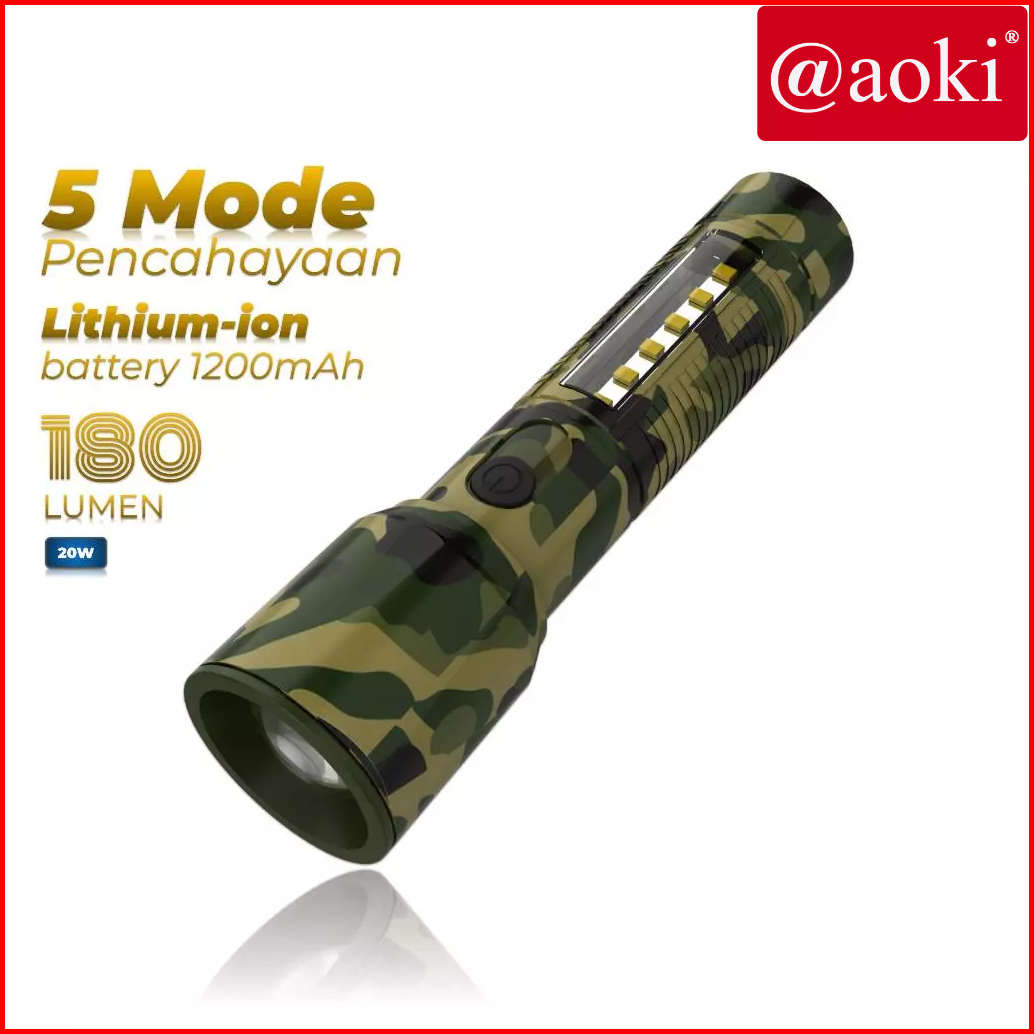 Aoki Senter Taktis Lapisan Kamuflase Multifungsi 5 Mode Led Dengan Zoom Usb Type-c