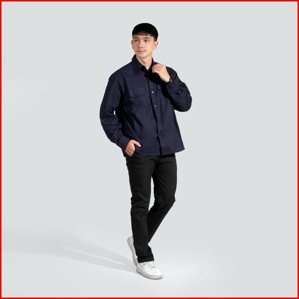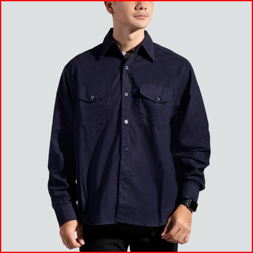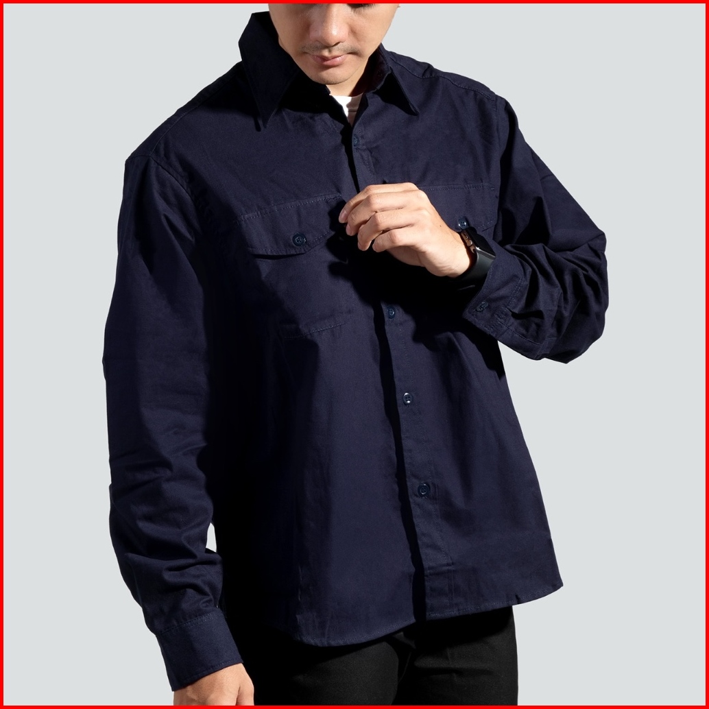 Mcvois Kemeja Pria Baby Kanvas Navy