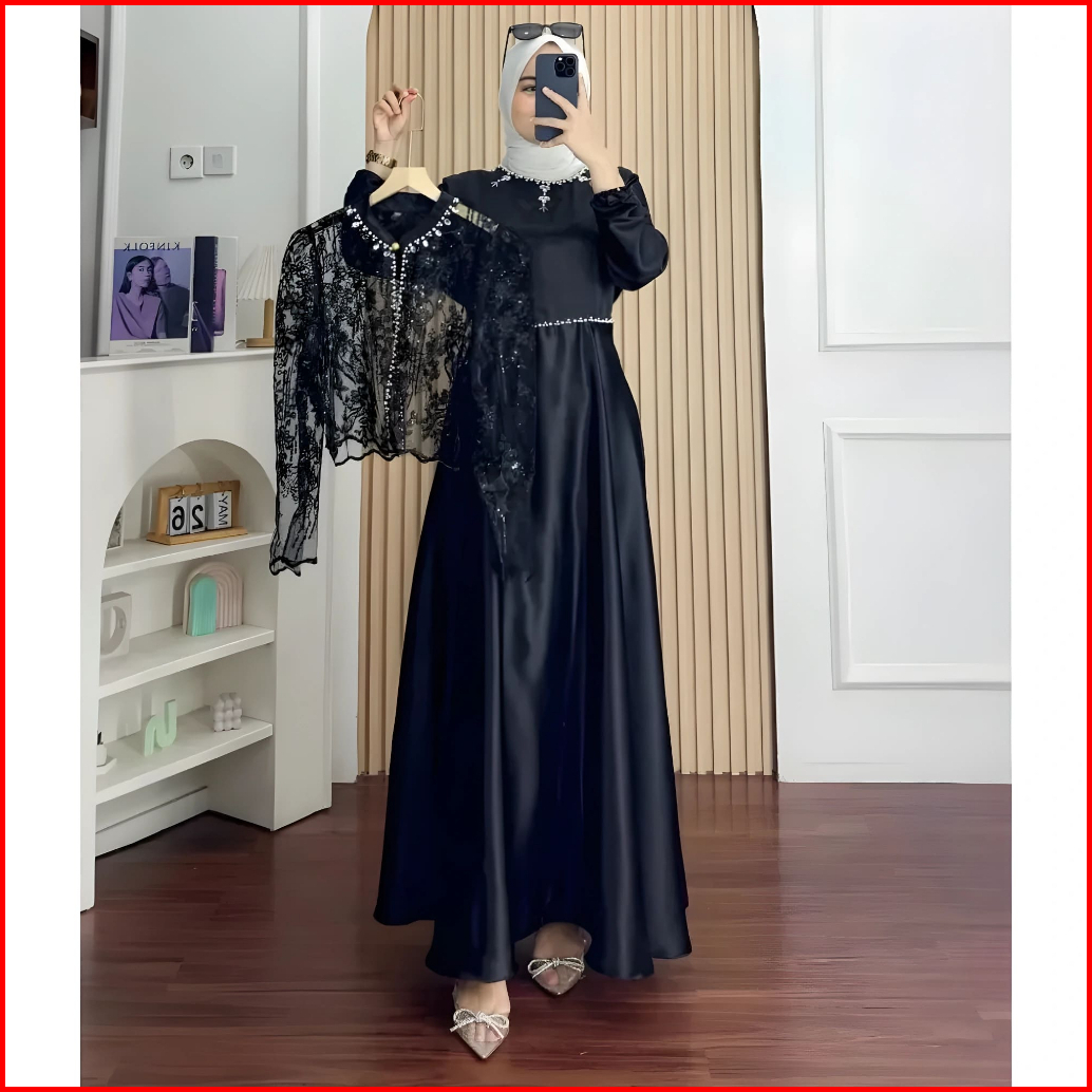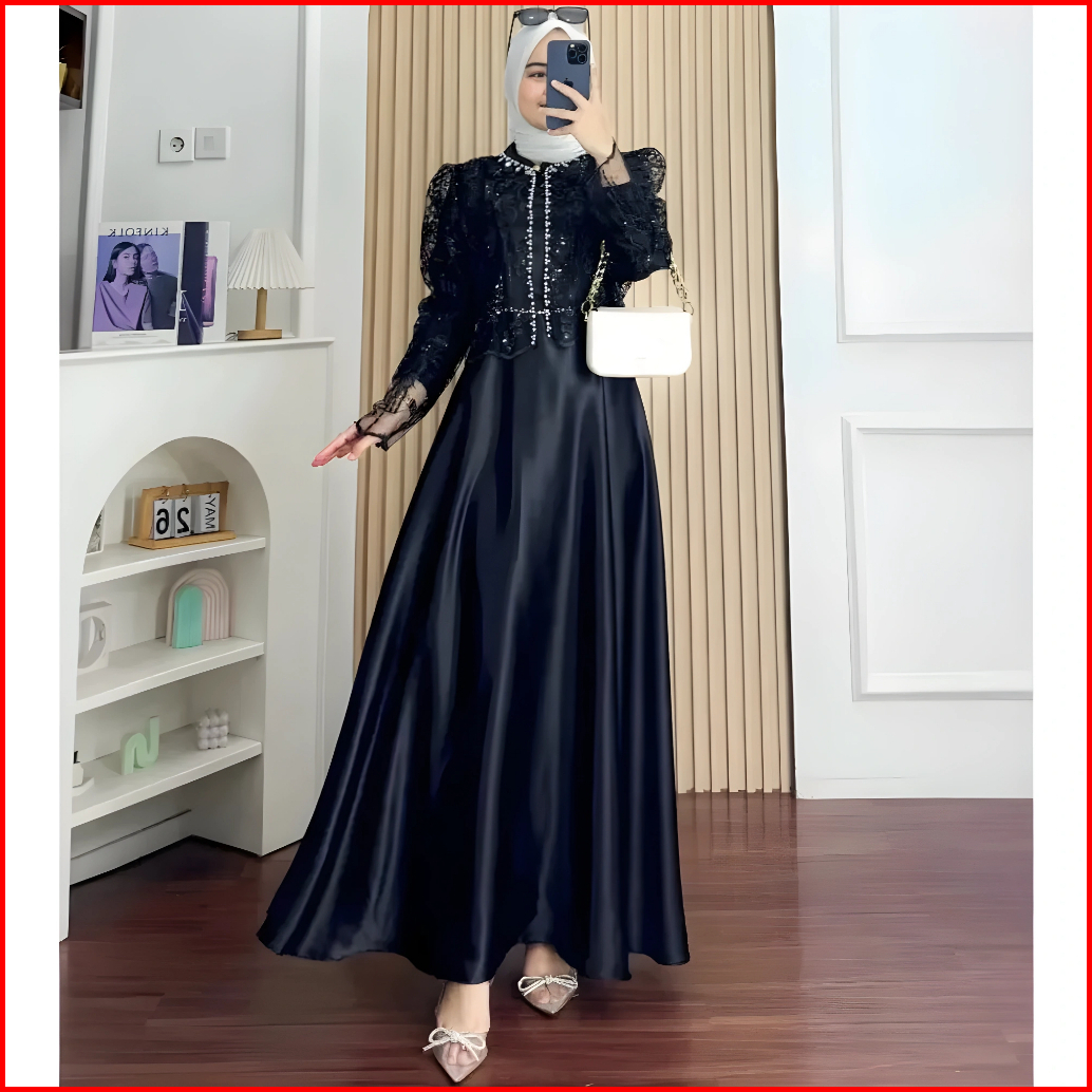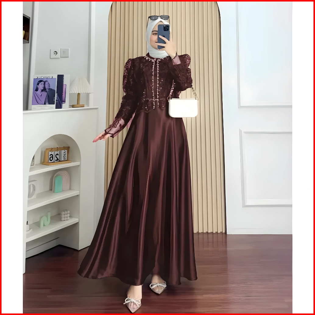 Sakura Dress Gamis Pesta Brukat Terlariis 2026 Silk Premium Mix Brukat Aplikasi Payet Mutiara Brukat