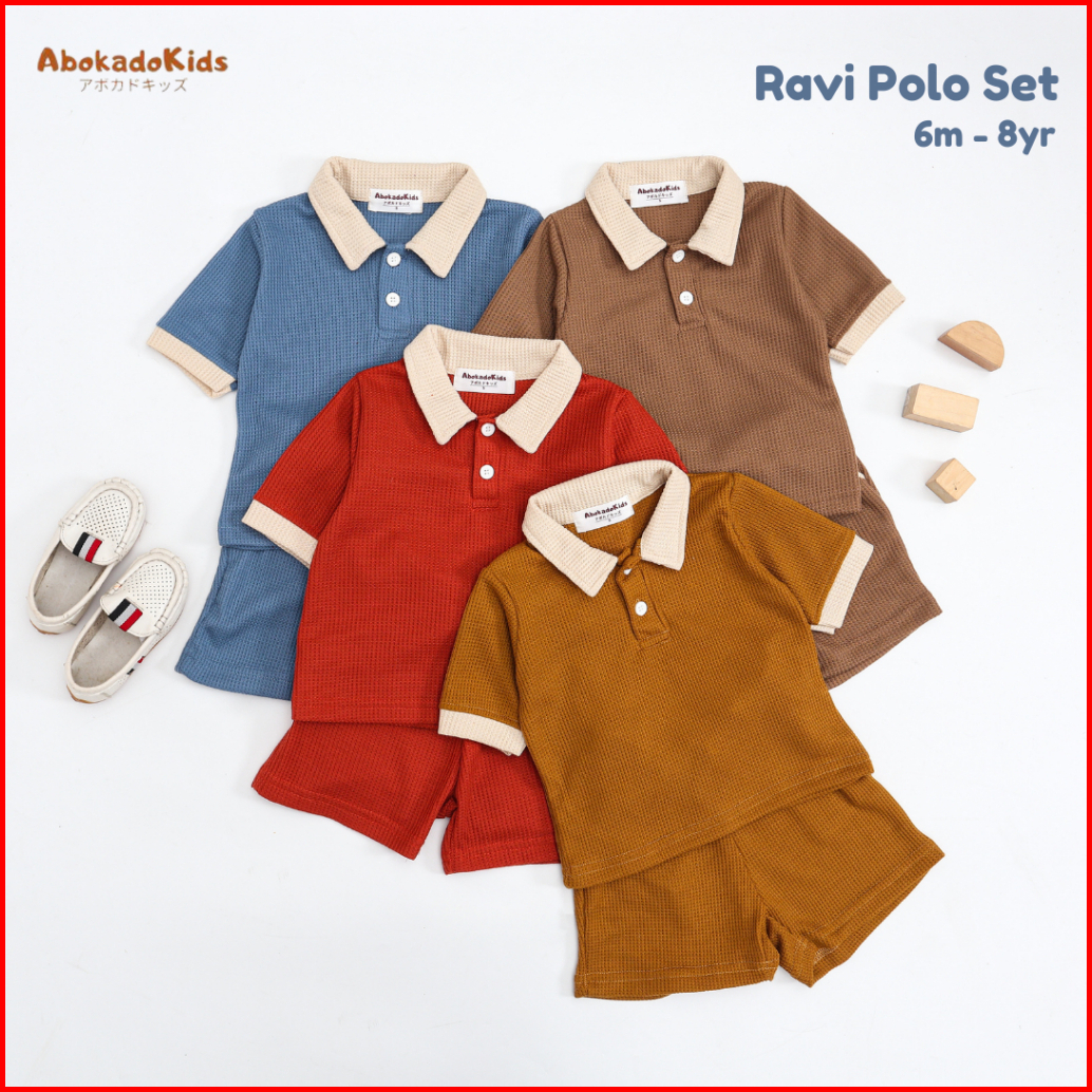 Abokado - Ravi Polo Set - Setelan Anak - Setelan Polo Anak - Oneset Anak Waffle Premium