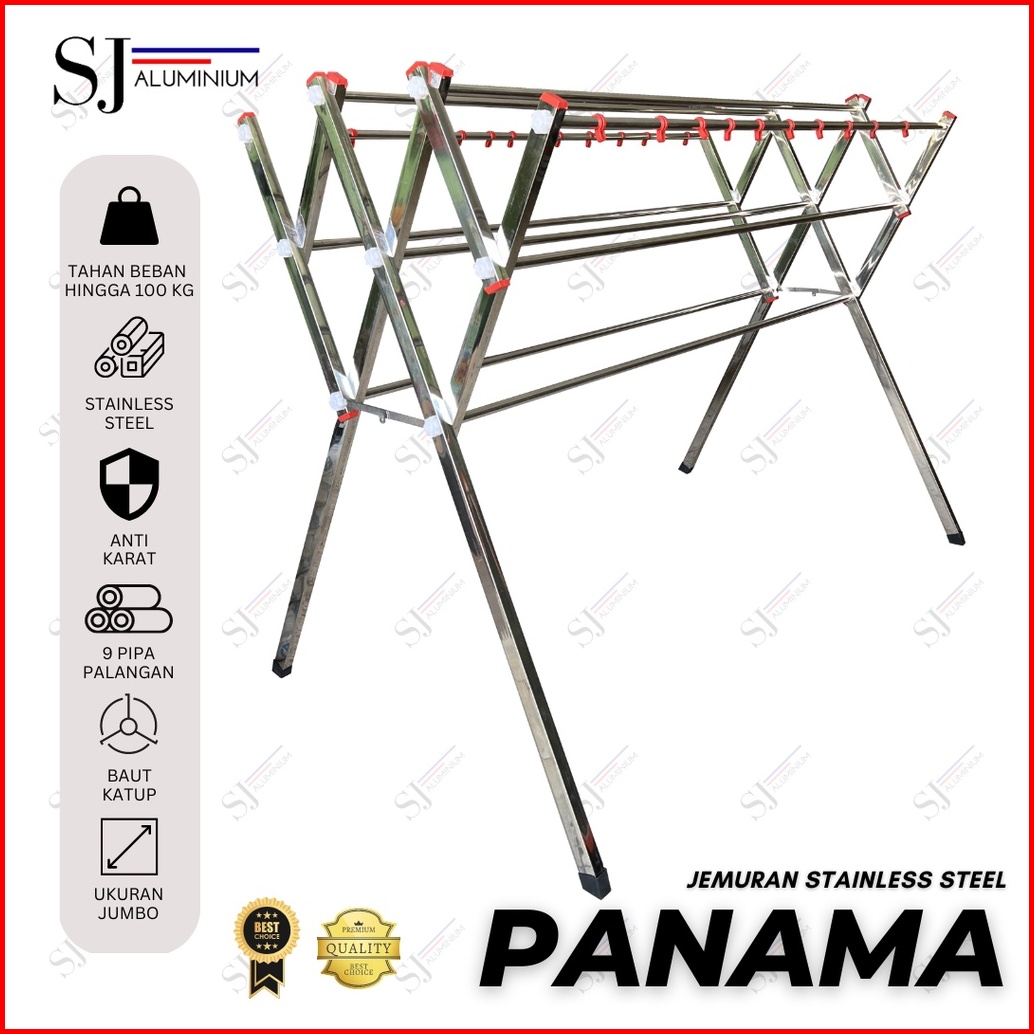 Jemuran Stainless Steel Jumbo Palang 9 Rak Baju Handuk Pakaian Hanger Lipat Bayi Panama - 180 Cm 1 8 Meter 1 8 M