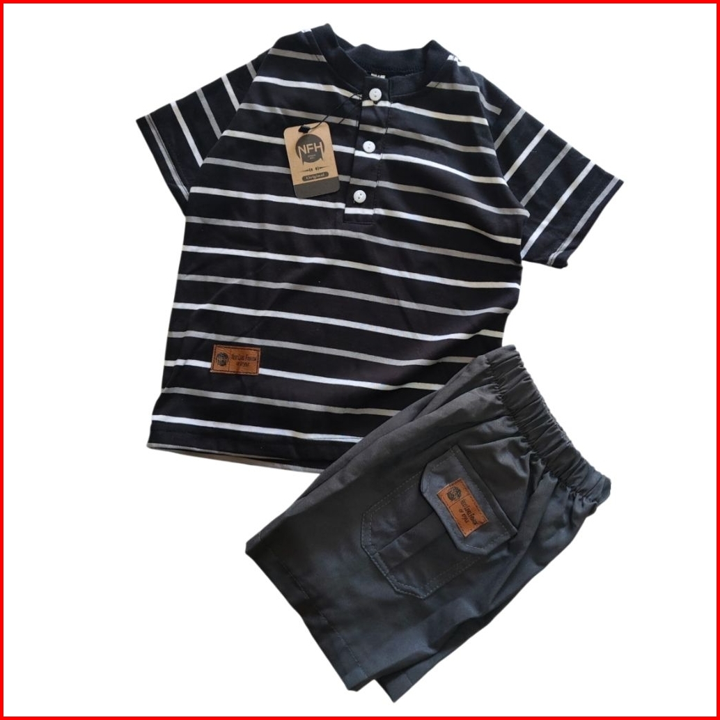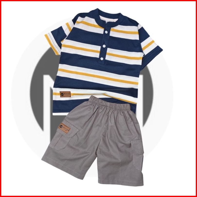 Broadstripe Setelan Kaos Motif Salur Bahan Combed 24s Premium 1-8 Tahun