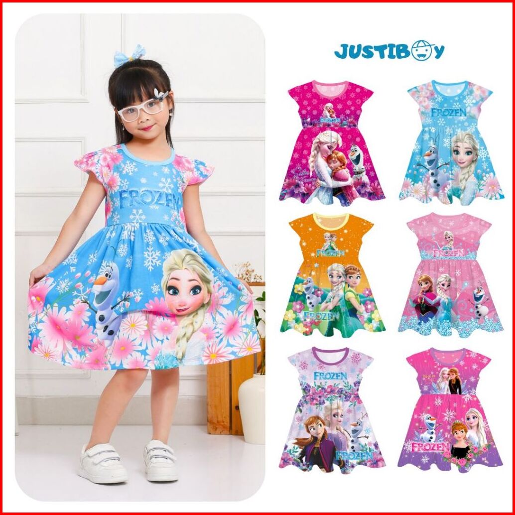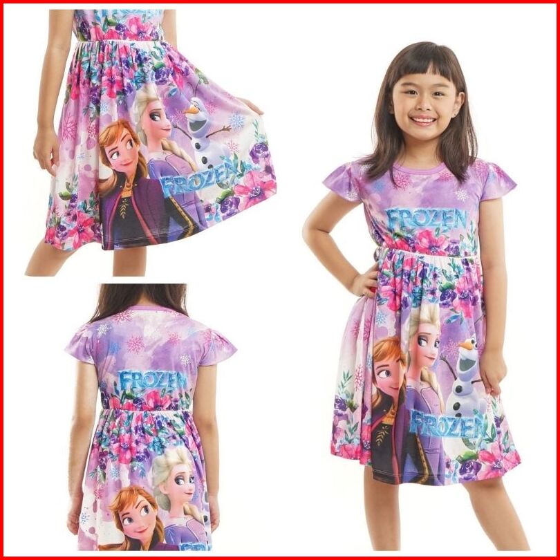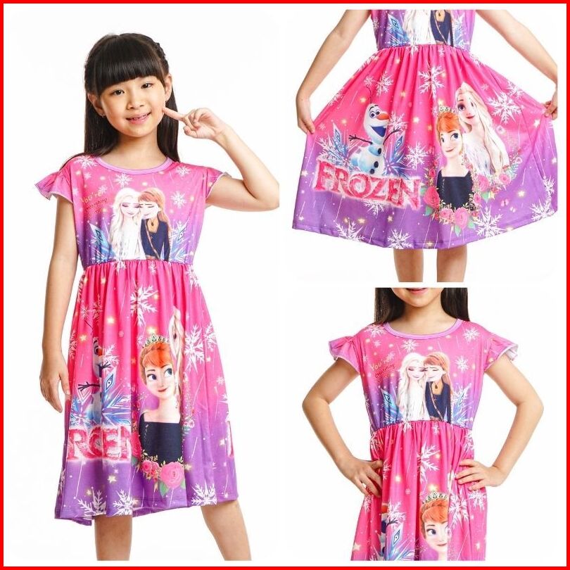 Dress Anak Perempuan Frozen Lengan Pendek Daster Anak Cewe Elsa Anna Umur 2 - 9 Tahun Abel