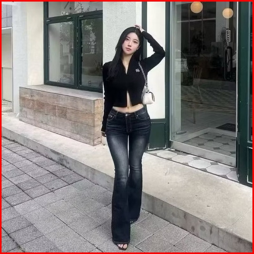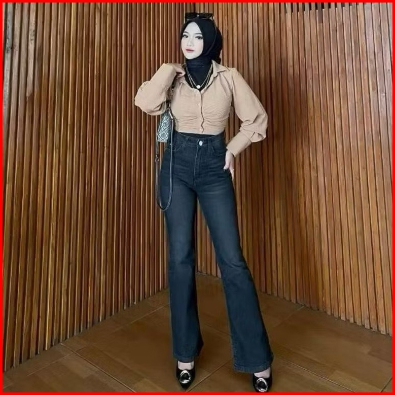 Fizzi Jeans - Highwaist Cutbray Jeans Wisker Wanita - Celana Cutbray Strecht Kekinian Korean Style