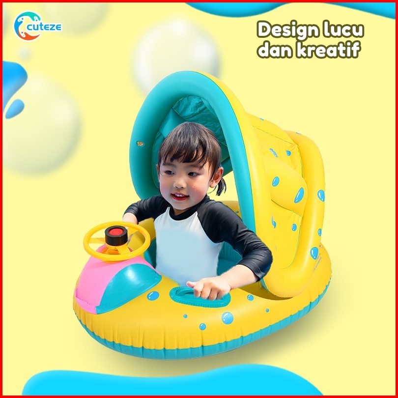 Pelampung Bayi Duduk Anti-rollover Ban Renang Anak-anak Klakson Setir Kerai Cincin Berenang Kanopi