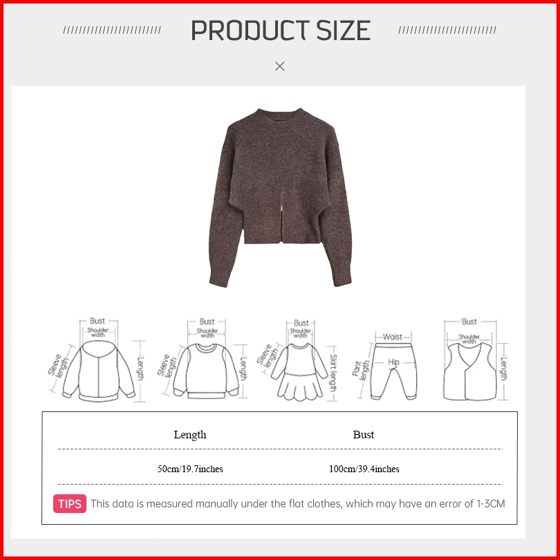 Pakaian Rajut Lengan Panjang Ritsleting Sweter Warna Solid Longgar Pakaian Rajut Serbaguna Ceruk Wanita Jd