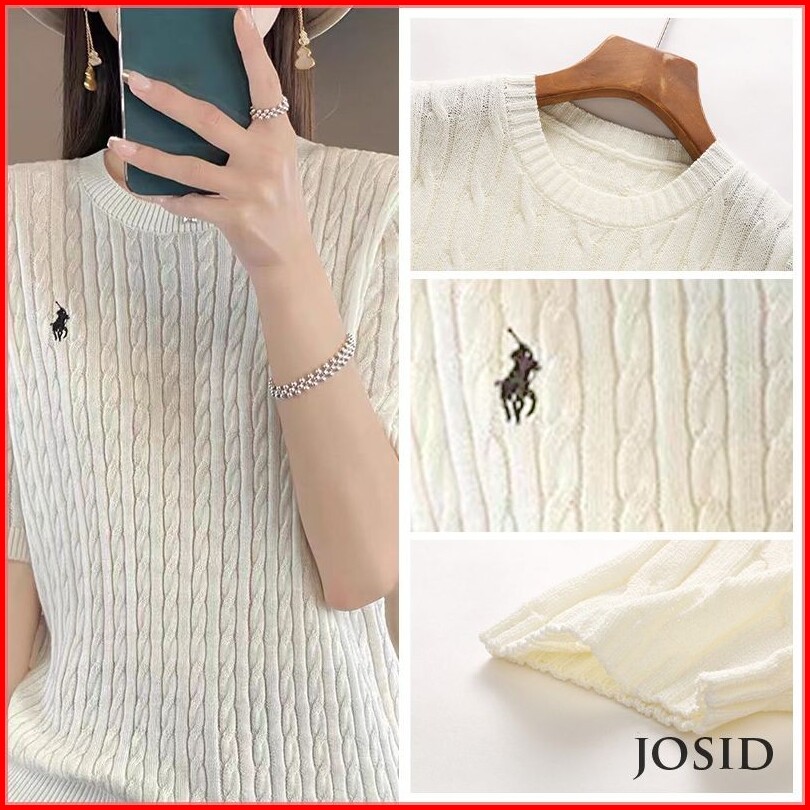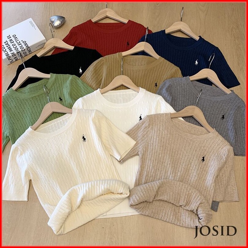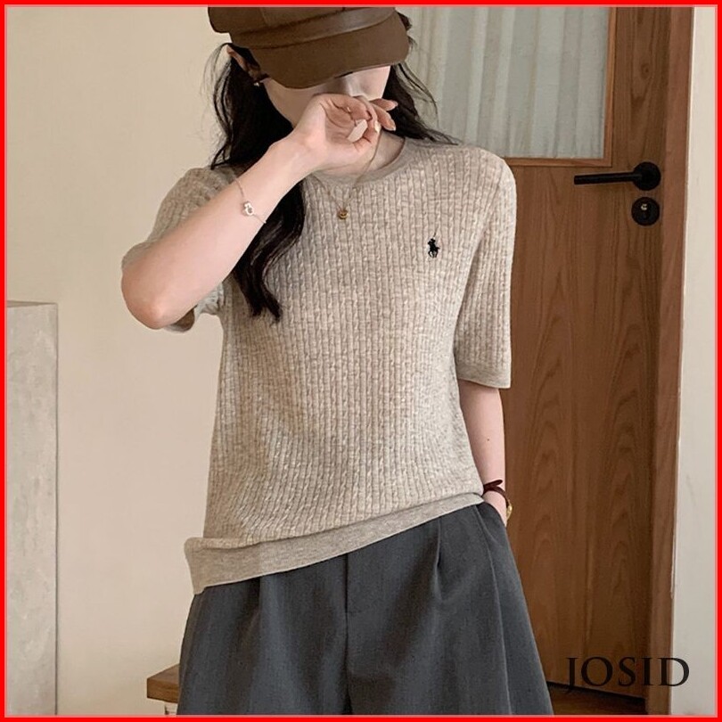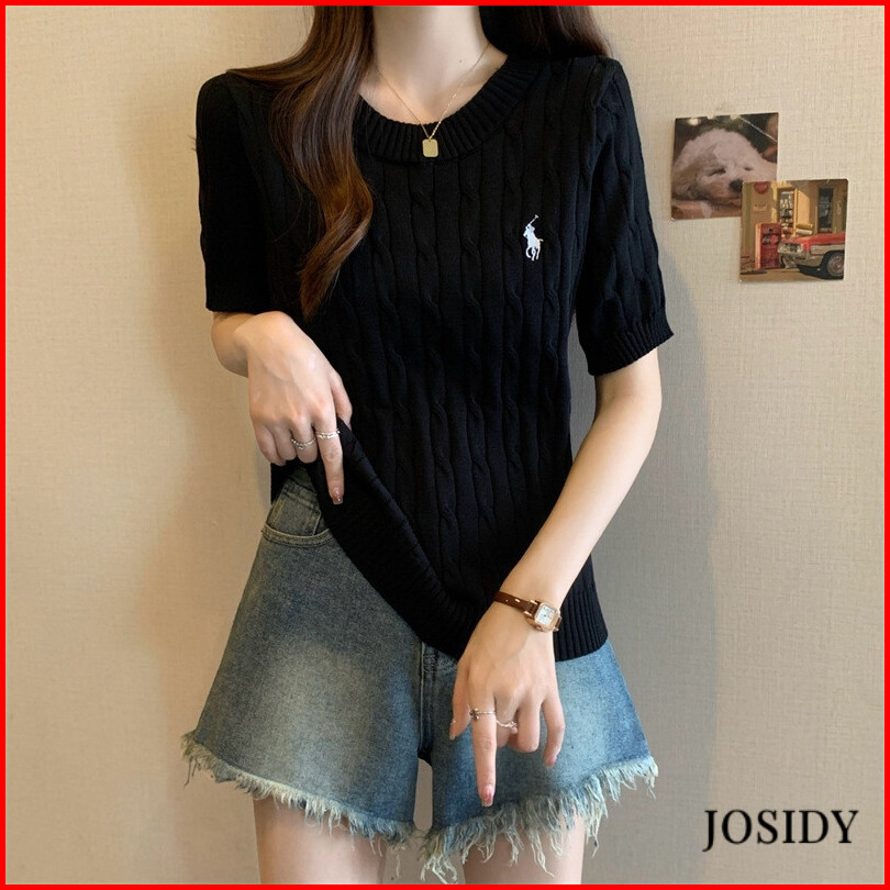 Pakaian Rajut Bordir Kuda Atasan Serbaguna Antik Bersirkulasi Lengan Pendek Rajut Wanita Jd