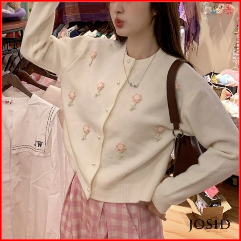 Sweater Kardigan Rajutan Bunga Tiga Dimensi Manis Korea Untuk Wanita Jd
