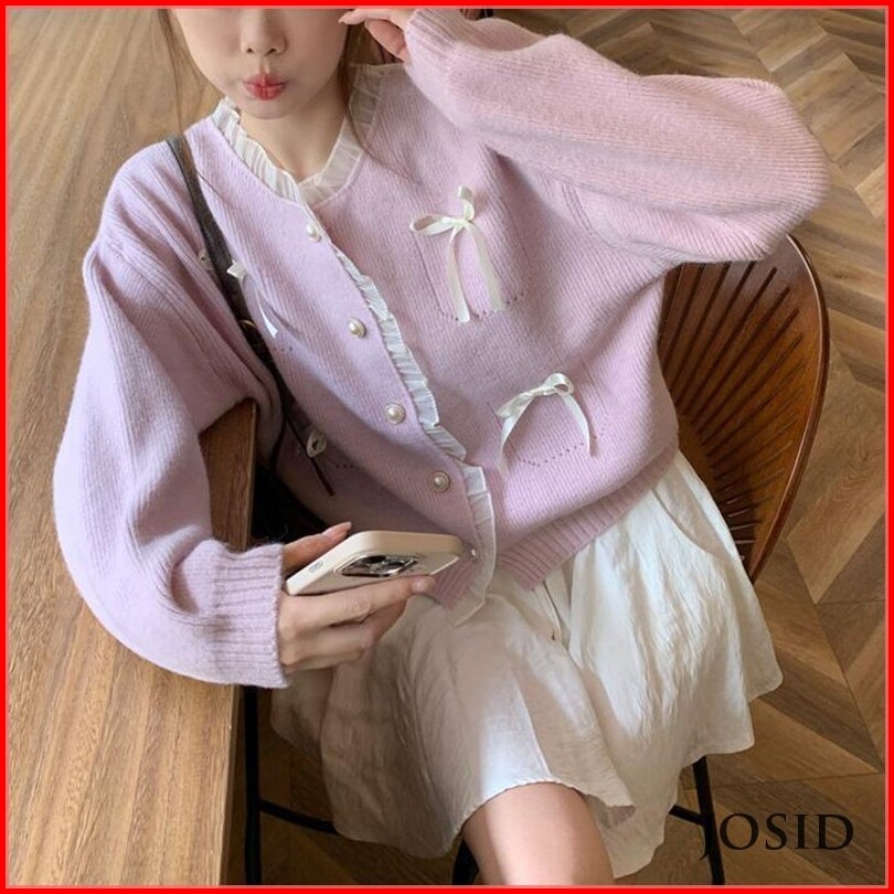 Mantel Pendek Gadis Manis Mantel Lengan Panjang Pita Kardigan Rajutan Sambungan Renda Segar Jd