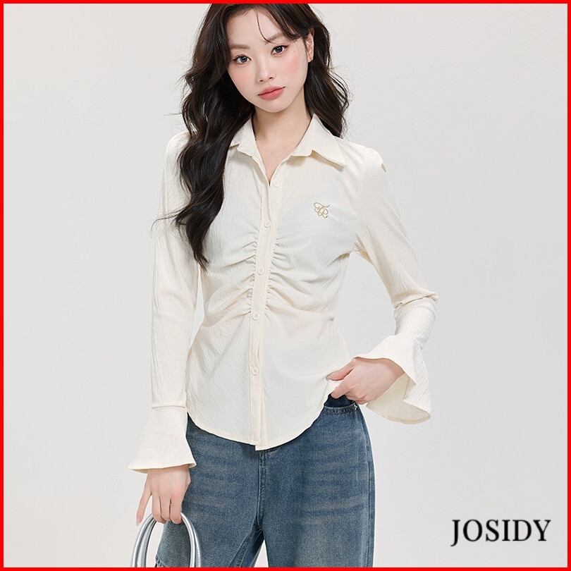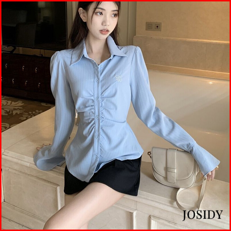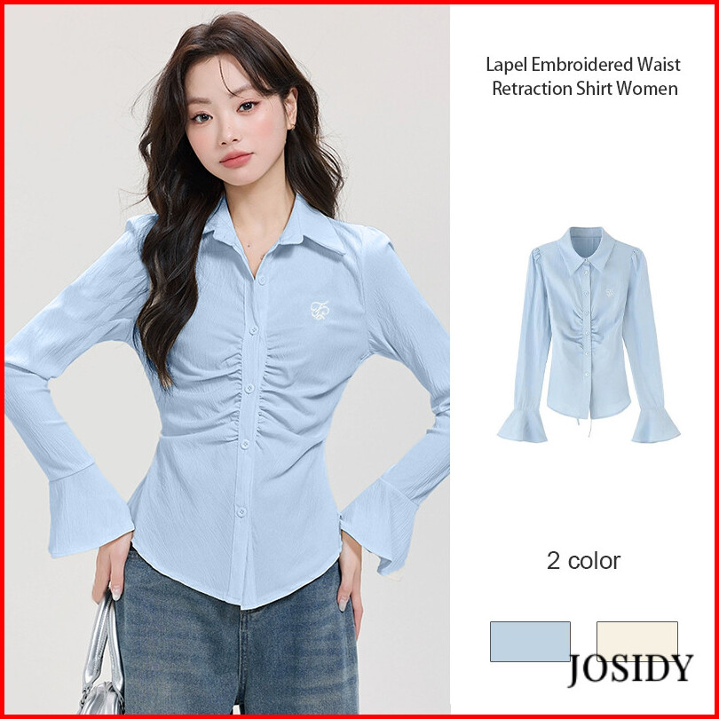 Kemeja Fashion Rasa Desain Kemeja Temperamen Kerah Kemeja Retraksi Pinggang Bordir Wanita Jd