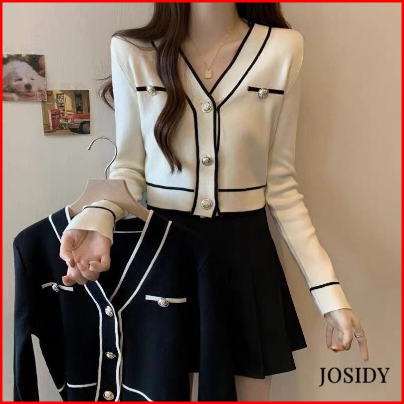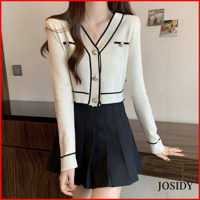 Kardigan Rajutan Kerah V Tipis Kardigan Pendek Fashion Trendi Kardigan Rajutan Lengan Panjang Wanita Jd