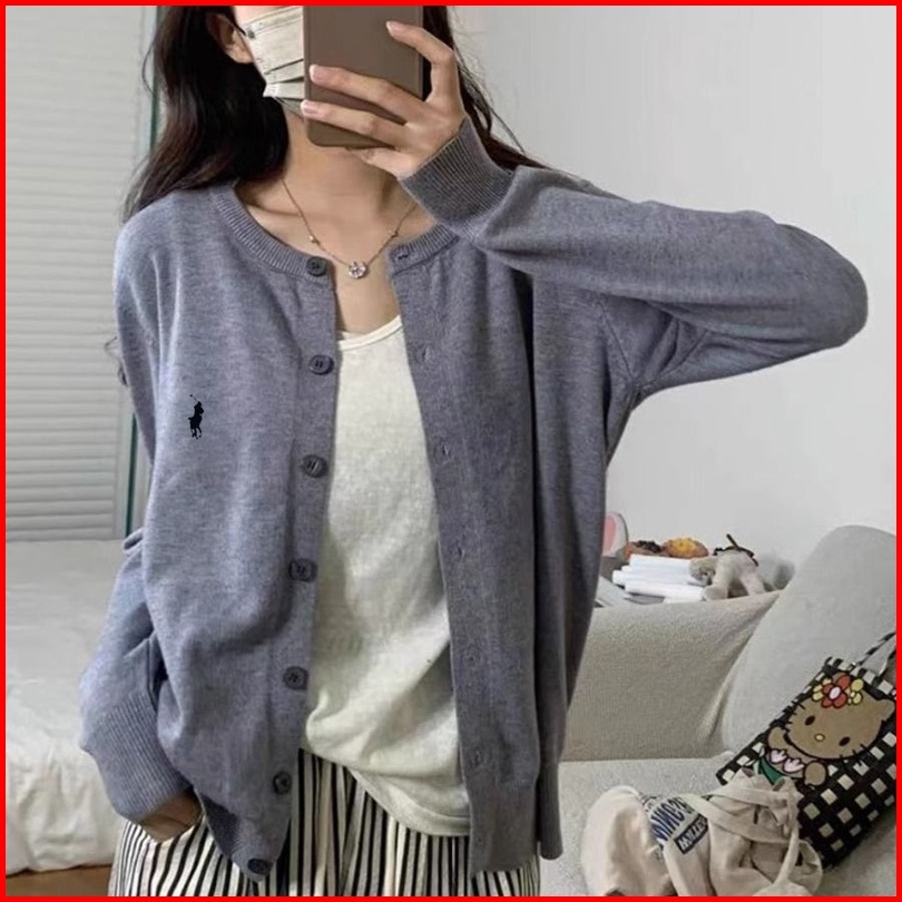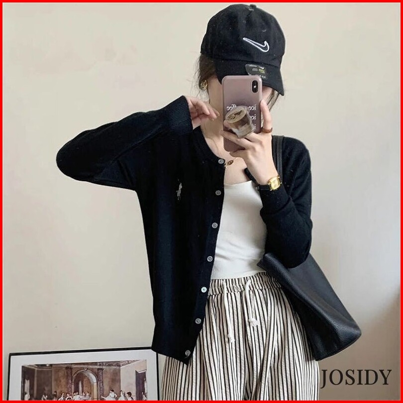 Kardigan Rajutan Lengan Panjang Bordir Gaya Perancis Jaket Leher Bulat Wanita Atasan Kelas Atas Jd