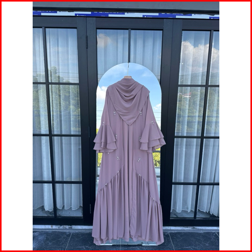 Dfm - Zaina Abaya Set Hijab Segiempat Gamis Abaya Wanita Terbaru Bahan Ceruty Armany Baby Doll Full Puring