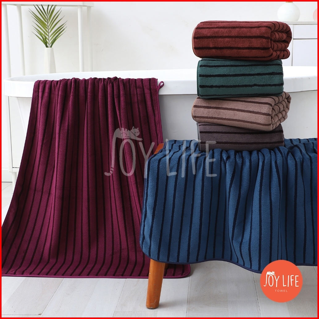 Joylife Handuk Mandi Bulu 70cmx140cm Handuk Dewasa Daya Serap Tinggi Dan Lembu Motif Salur Gelap Merek Sarang Lebah