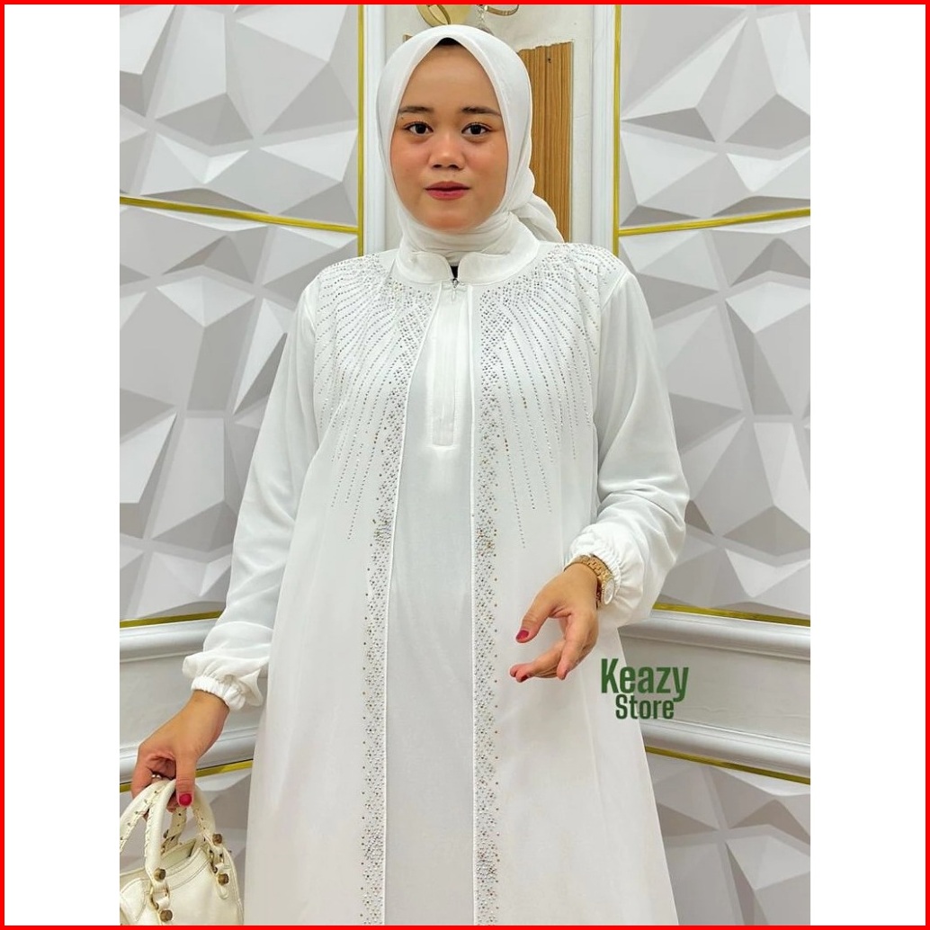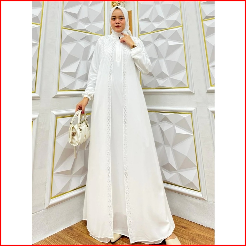 Gamis Wanita Terbaru Mewah Ceruti Baby Doll Mix Swarovsky Gamis Putih Wanita Kekinian Dan Premium