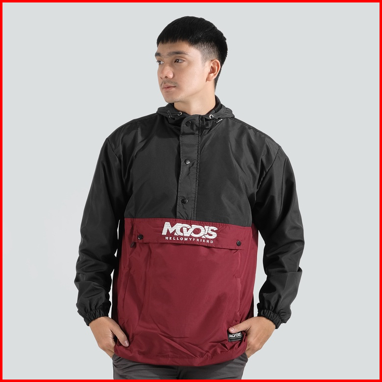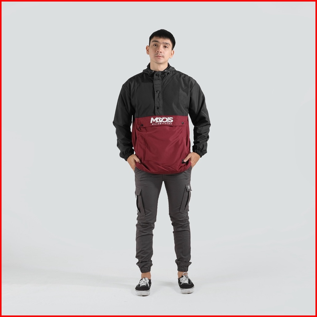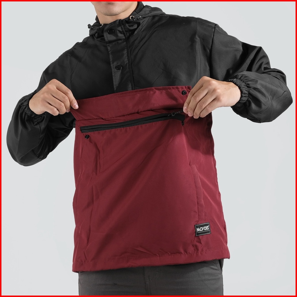 Mcvois Jaket Cagoule Pria Black Maroon Premium Distro