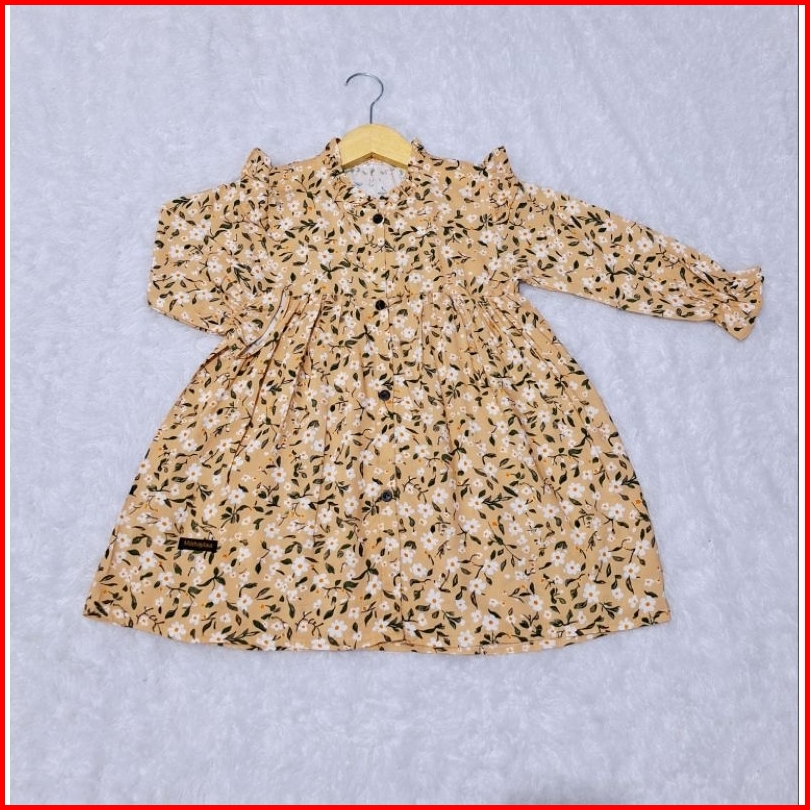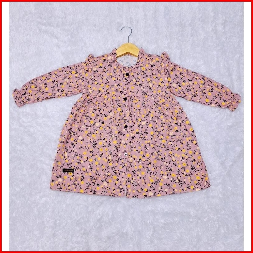 Terbaru Dres Anak Rayon Premium Motif Bunga Kancing Ful