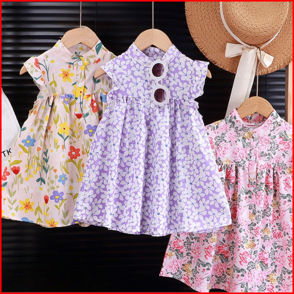 Bykiddos - Dress Anak Perempuan Motif Flower Cantik Pakaian Anak Perempuan Gaya Feminim