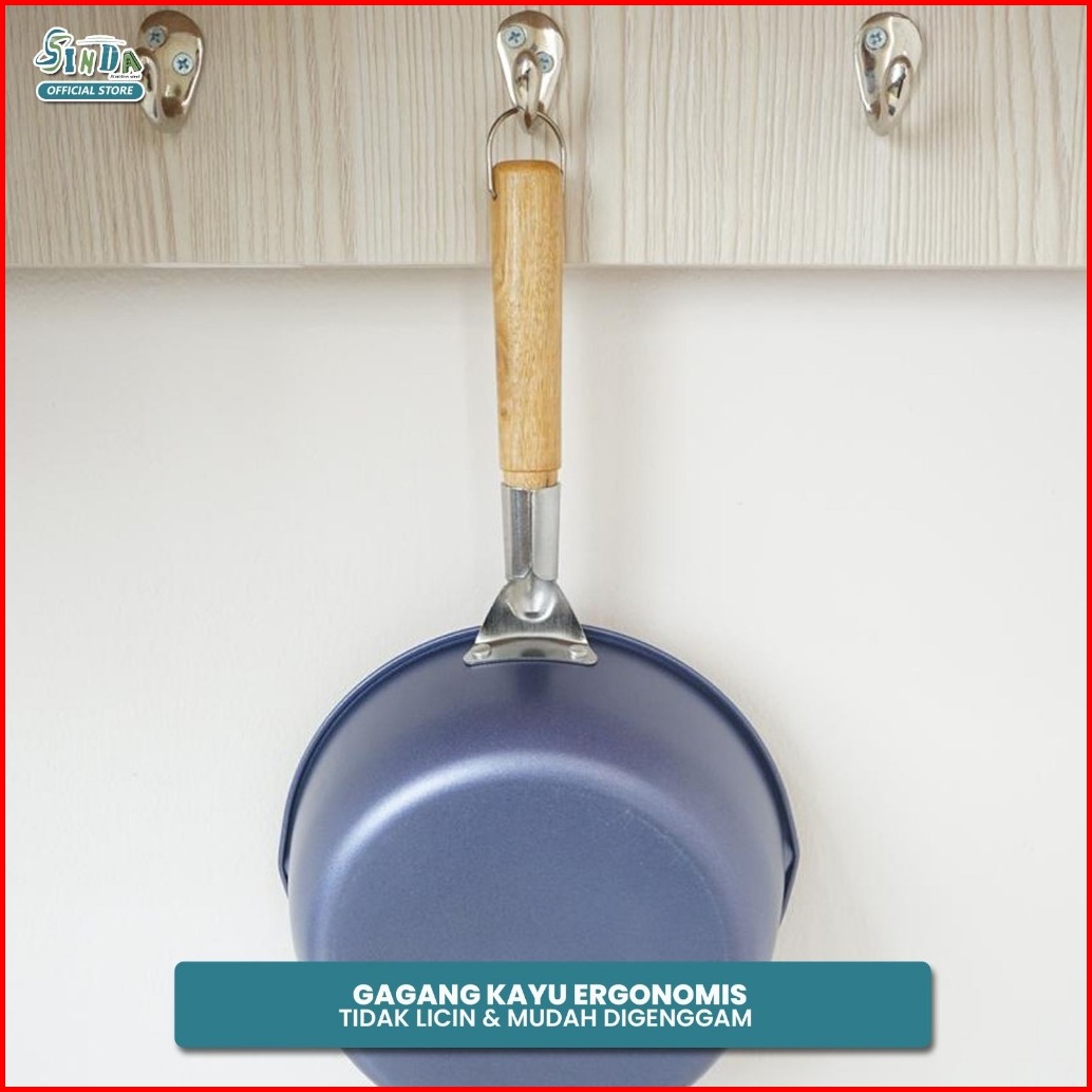 Sinda Panci Susu Anti Lengket Panci Marble Penggorengan Masak Mie 18cm 20cm Gagang Kayu