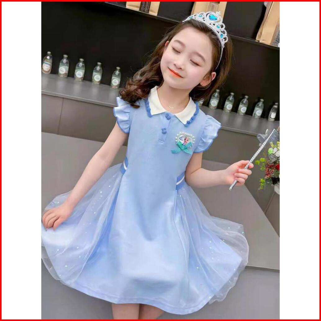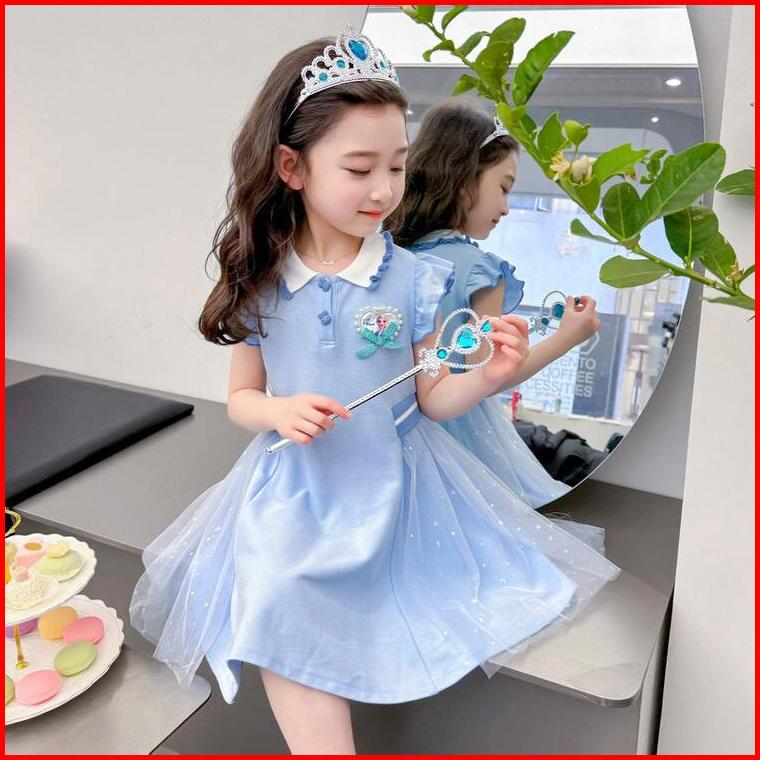Dress Anak Perempuan Motif Frozen Terbaru 2024 Baju Dress Harian Anak Umur 1-6 Tahun