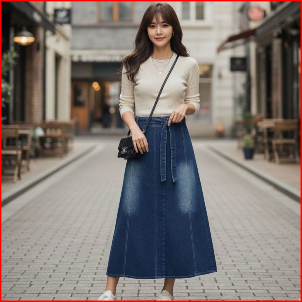 Blue Threads - Natali Rok Jeans Skirt Panjang Wanita Denim Tebal