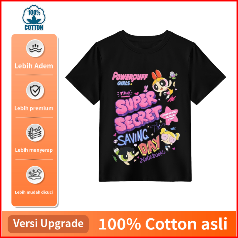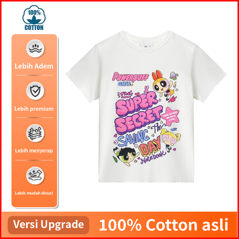 Powerpuff Girls Blossom Bubble Fluffy Kaos Lengan Pendek Katun Panjang Longgar Anime