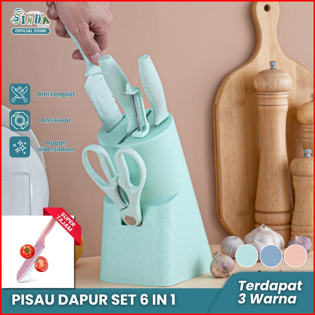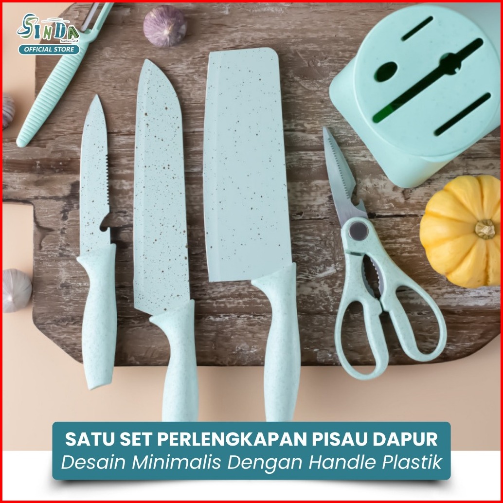 Sinda Pisau Dapur Set 6 In 1 Kitchen Knife Set 6 In 1 Dengan Wadah Berkualitas