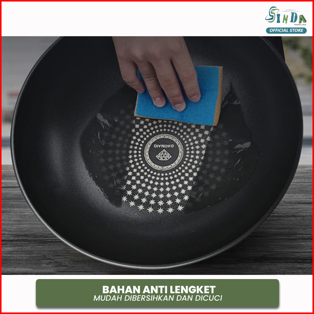 Sinda Wajan Penggorengan Anti Lengket Batu Medis Ukuran 32 Cm Free 2 Botol Minyak Kaca Dan 2 Penyimpanan Bumbu
