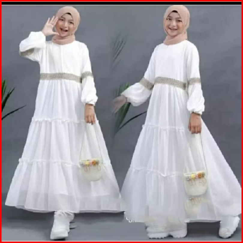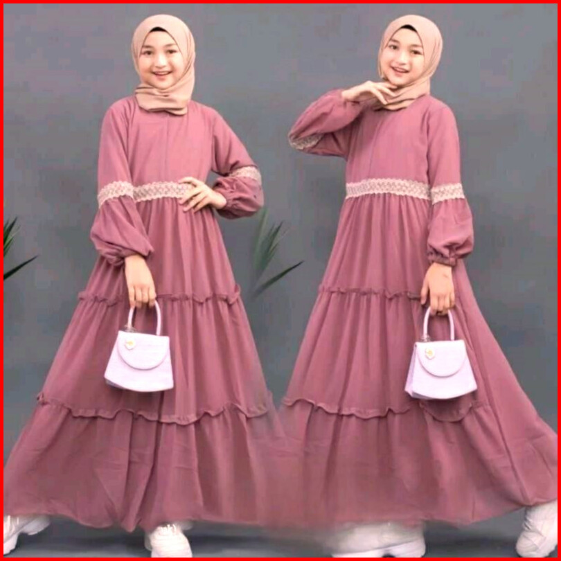 Baju Muslim Abaya Anak Perempuan Mewah Renda Gamis Anak Usia3-12thn Baju Muslim Crinkle Airflow