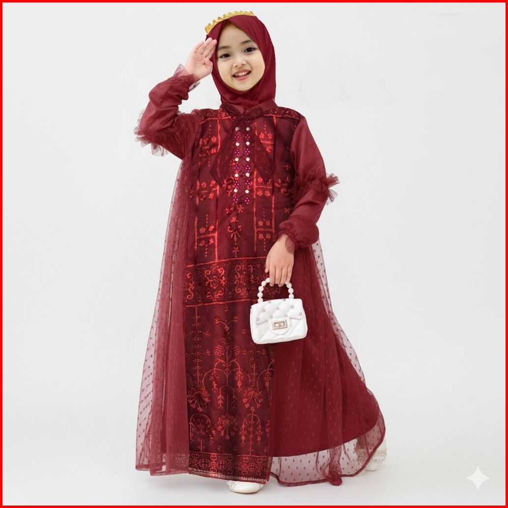 Gamis Anak Burgundy Perempuan Angel 2-13thn Baju Pesta Anak Mahogany Perempuan Muslim Baju Pesta Anak Muslim Gamis Pesta