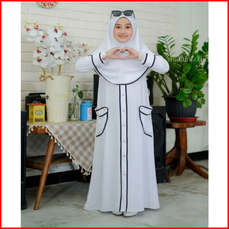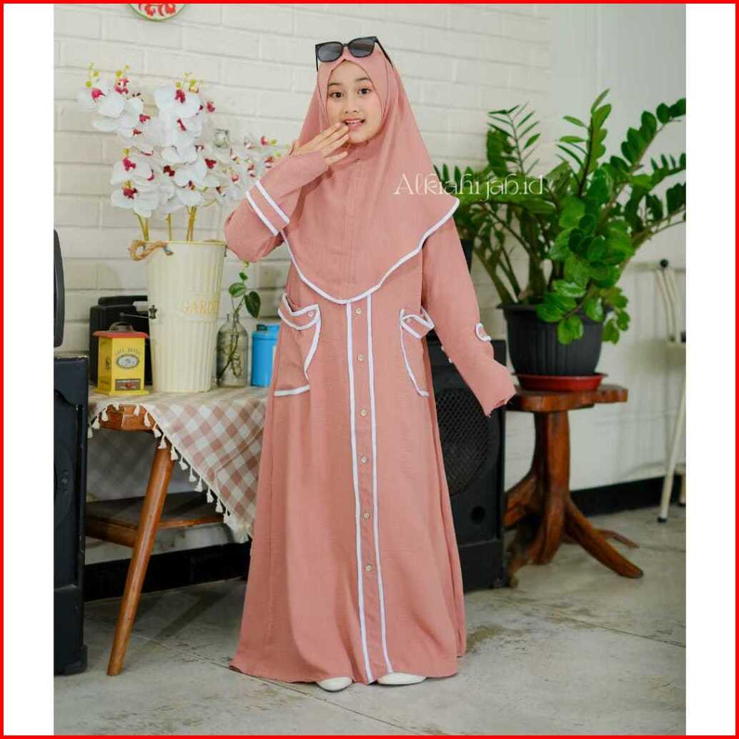Safea Abaya Set Kerudung Usia 3-14 Tahun Bahan Crinkle Airflow Size M L Xl Gamis Anak Lebaran Terbaru
