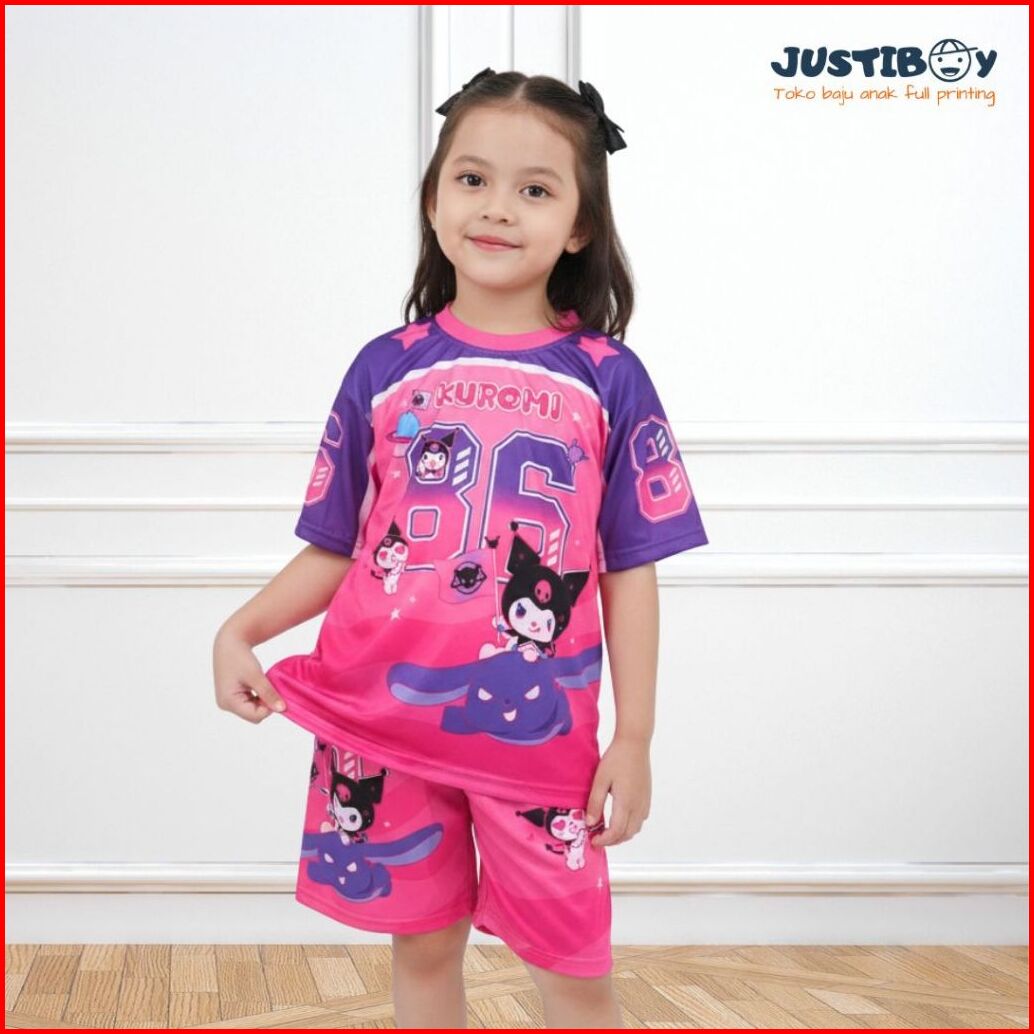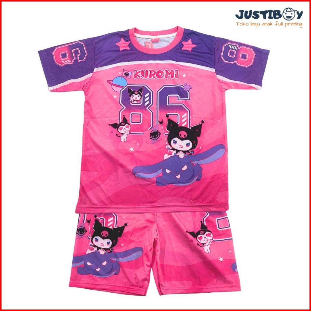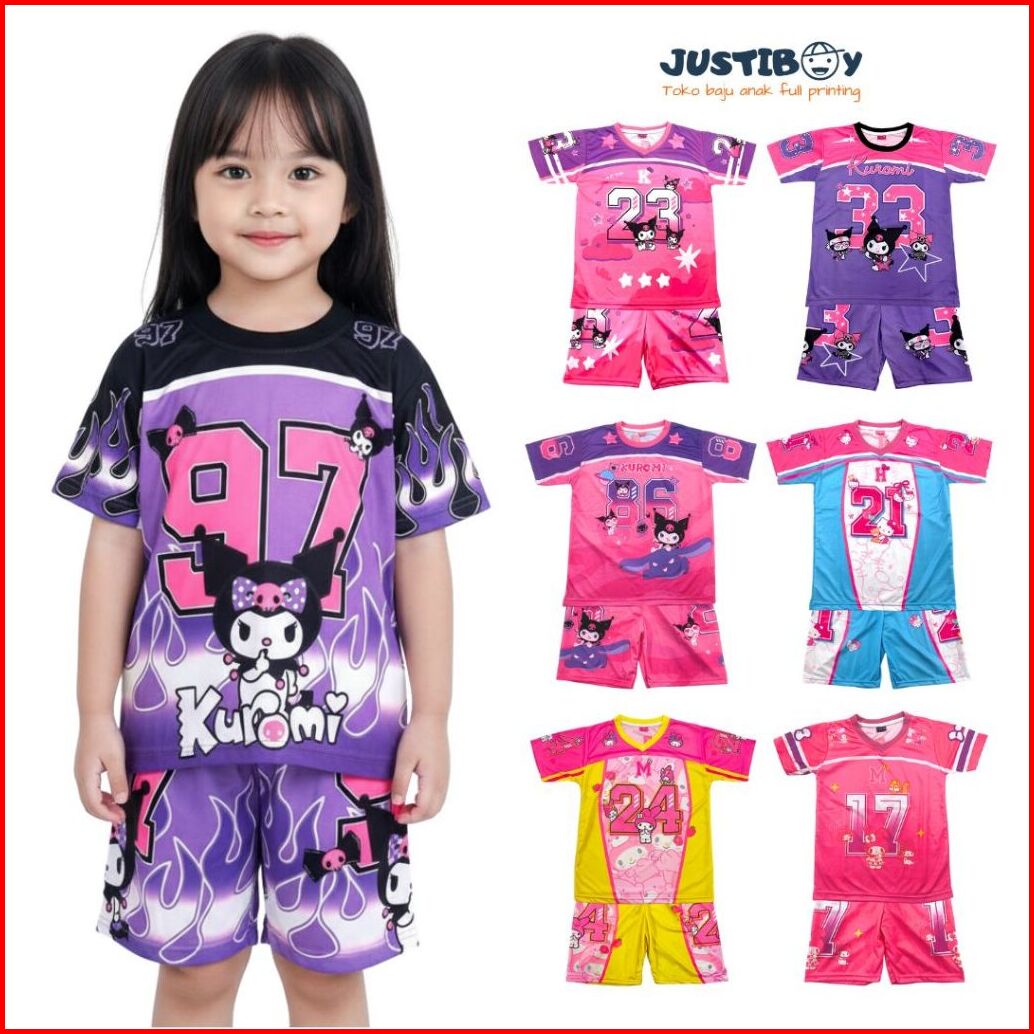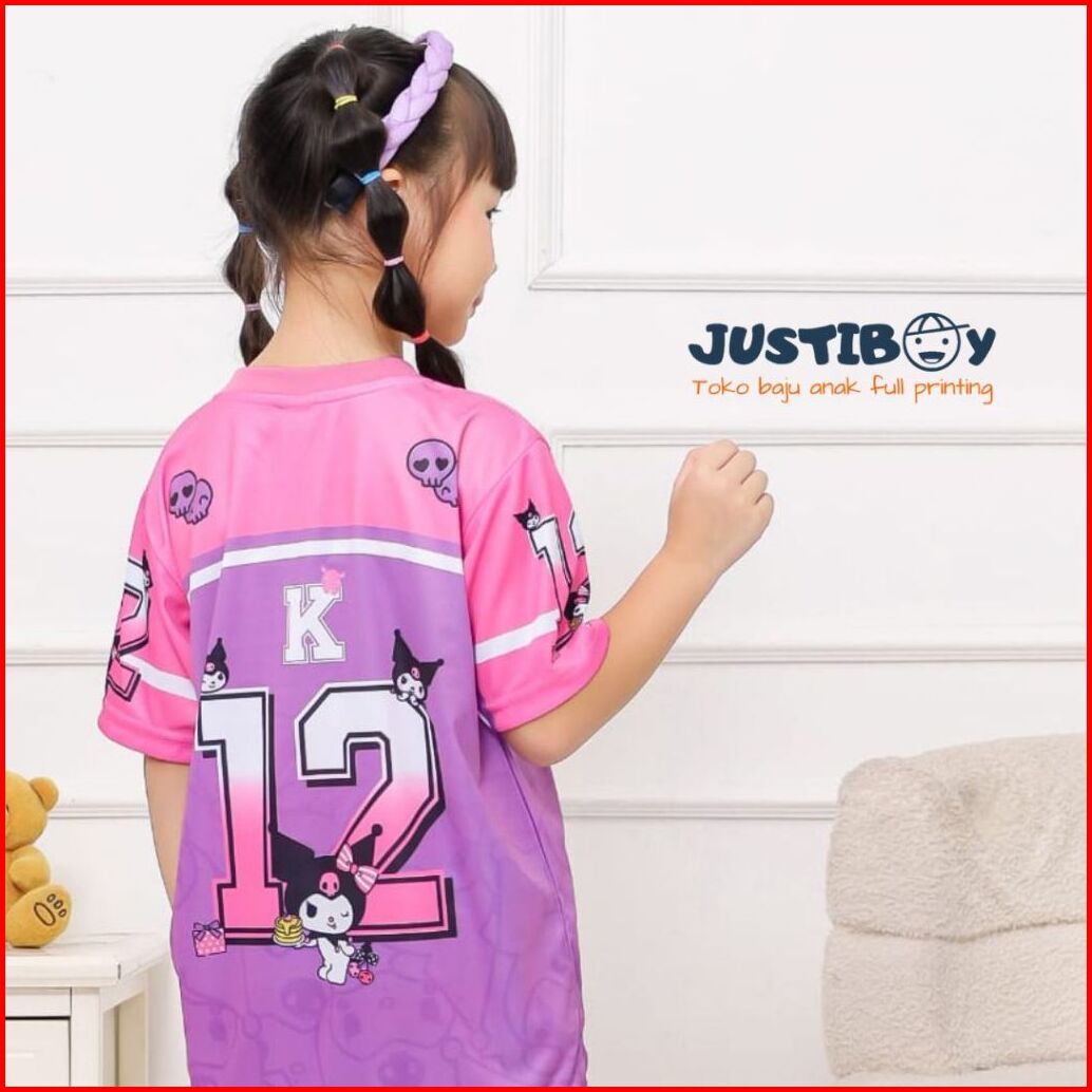 Setelan Jersey Baju Anak Basket Gambar Kuromi Full Printing Ukuran 2 - 11 Tahun