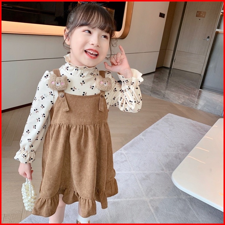 Uisa 6 Bulan - 5 Tahun Dress Anak Perempuan Bear Lengan Panjang Baju Princess Gaun Anak Perempuan Dress Bayi Daster Cewe
