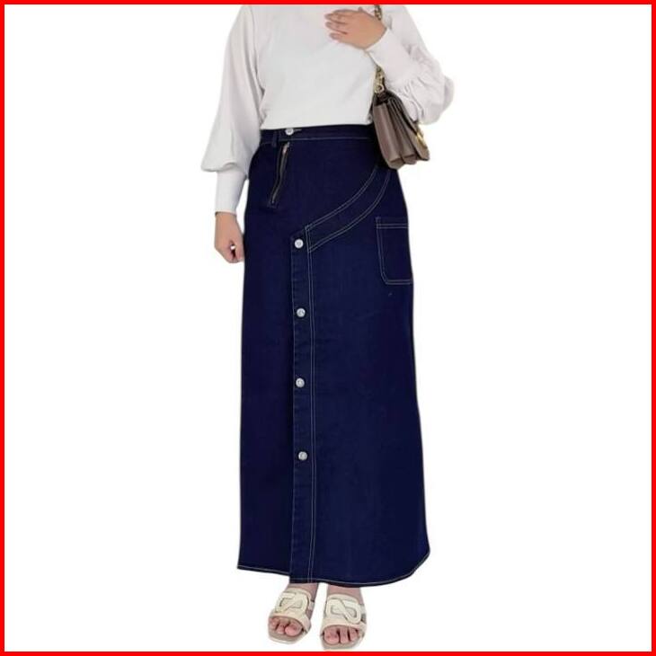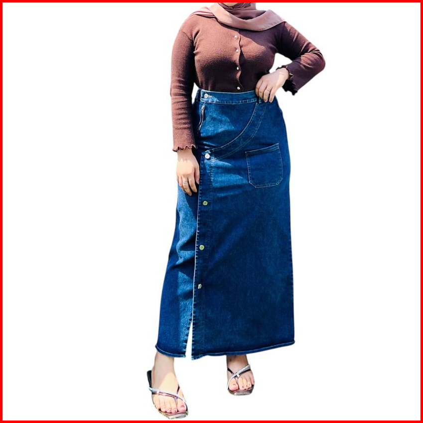 Bluethreads - Clara Rok Jeans Skirt Panjang Wanita Kancing Karet