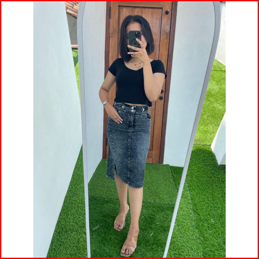 Blue Treads - Rok Jeans Skirt Pendek Stretch Wanita Belah Samping Higwaist Terbaru