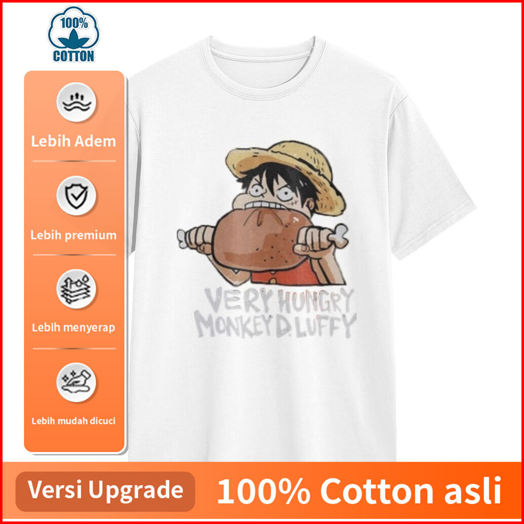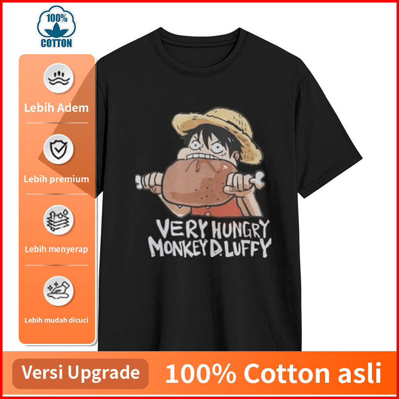 Baju Kaos Hungry Luffy Eating Turkey. Katun Lengan Pendek - Atasan Nyaman Cocok Gym Hangout Desain Keren
