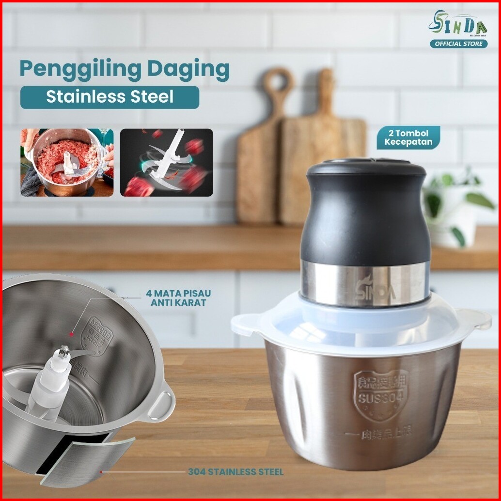 Sinda Blender Chopper Stainless Steel 2l Penggiling Bumbu Daging Sayur Buah Food Processor